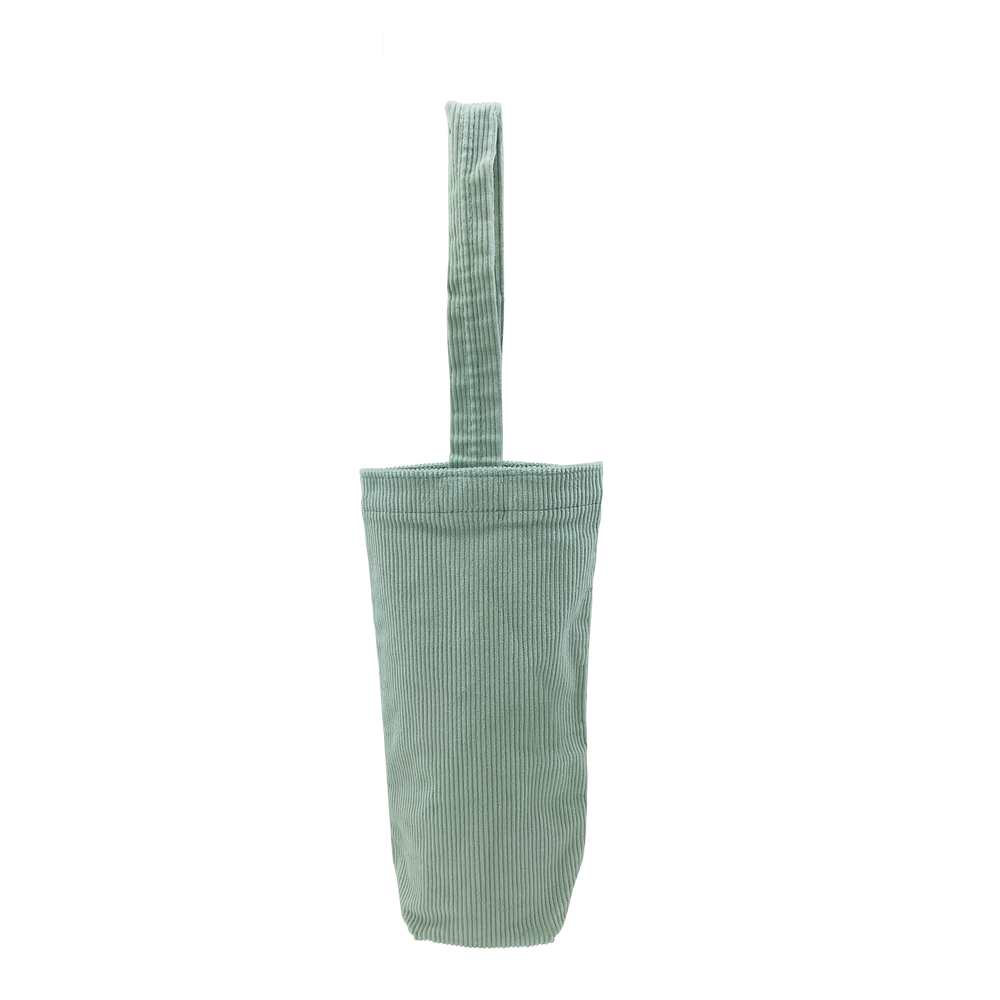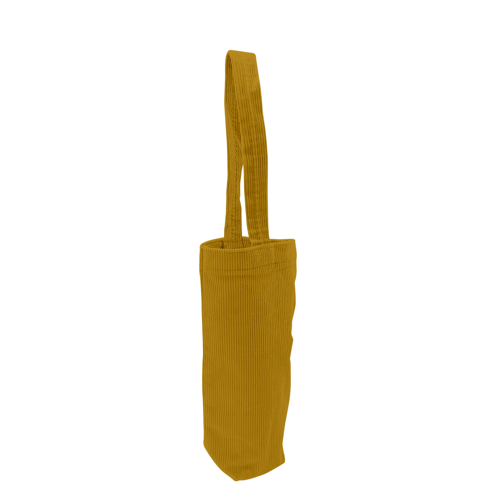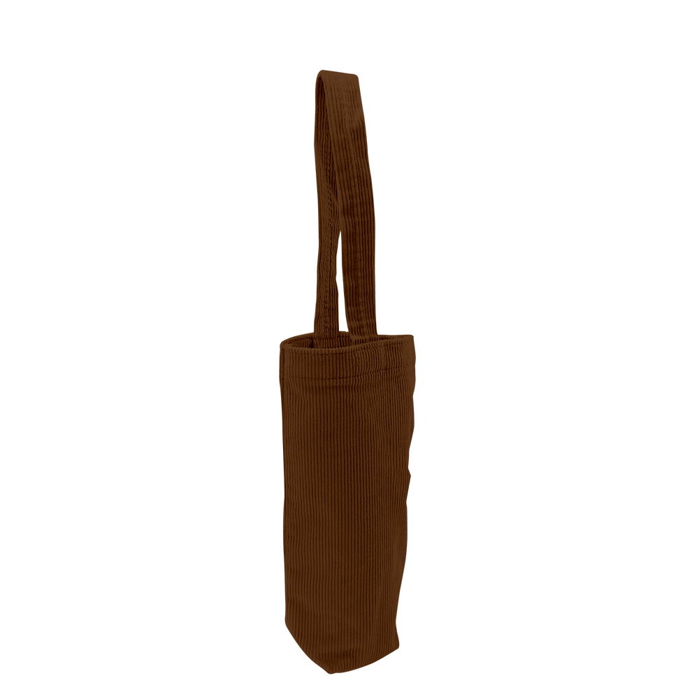 This single-bottle tote brings back a sense of fashionable nostalgia with colored corduroy fabric. Measuring 6” W x 10.75” H, this exceptional tote will easily carry a