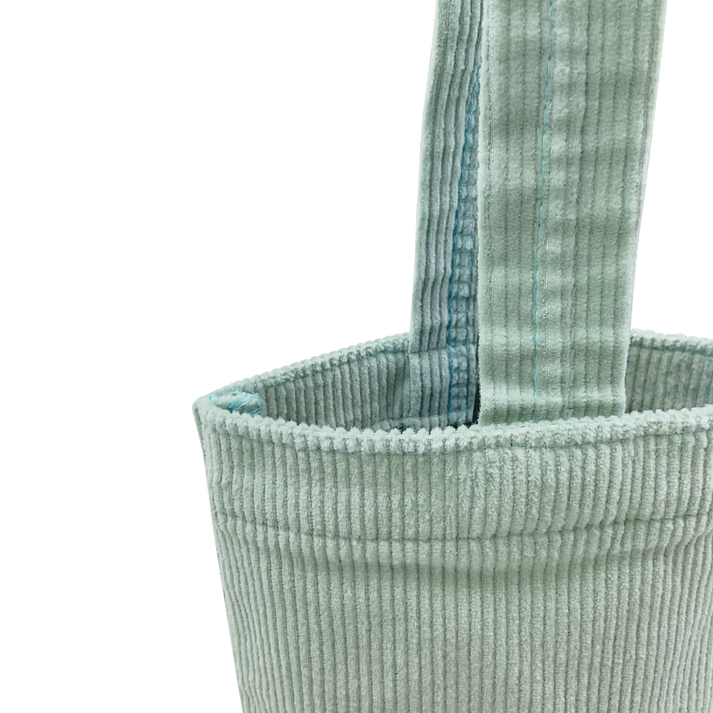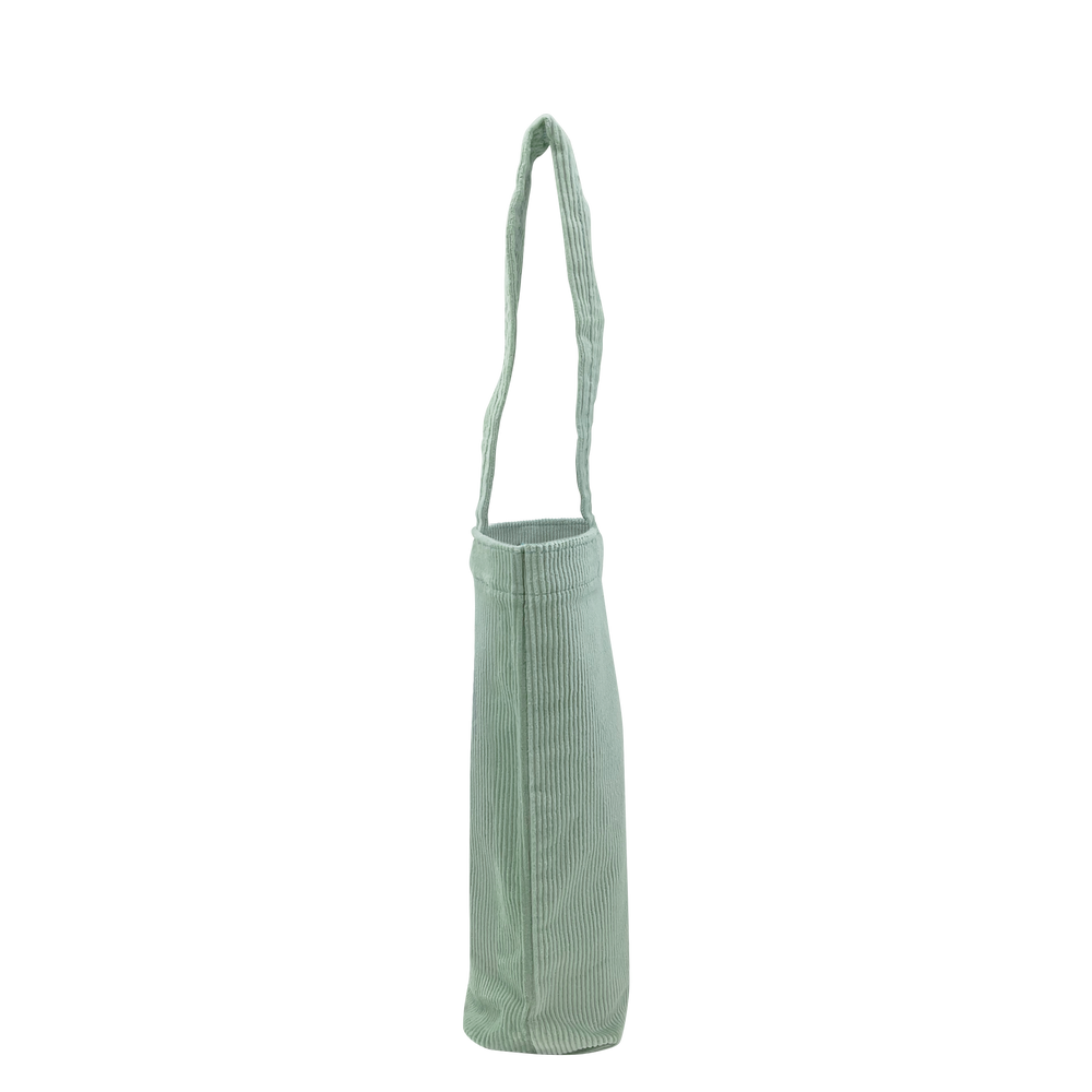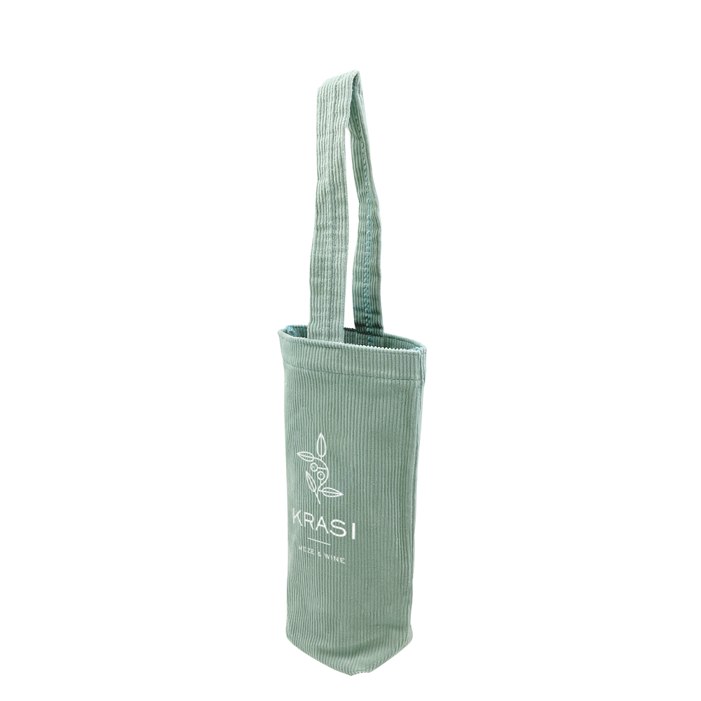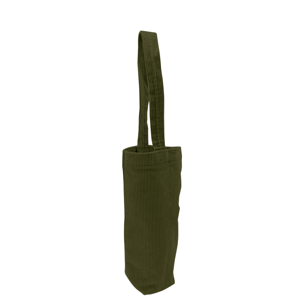 This single-bottle tote brings back a sense of fashionable nostalgia with colored corduroy fabric. Measuring 6” W x 10.75” H, this exceptional tote will easily carry a