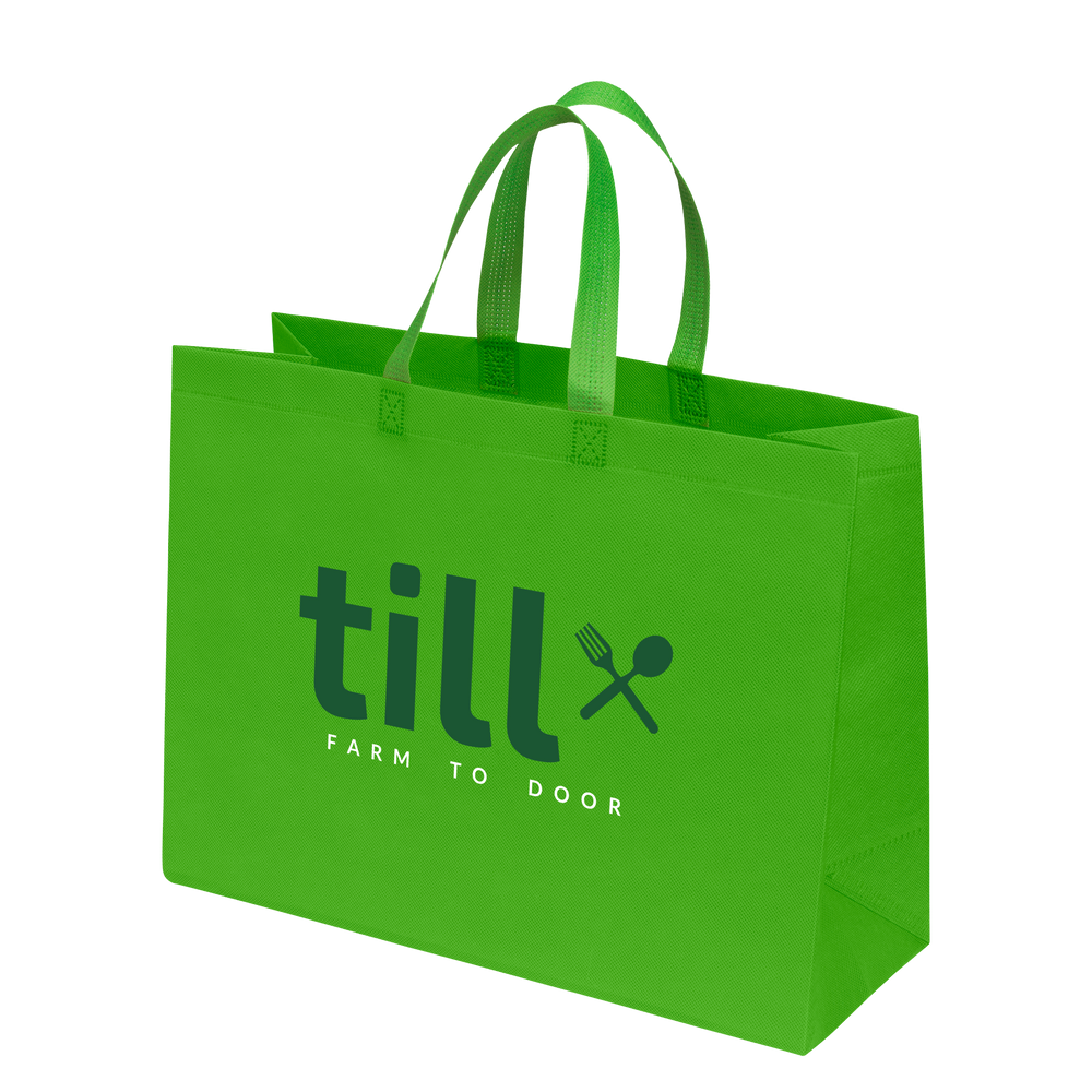 The 16" W x 12" H x 7" D Sonic-Weld Tote bag is completely none woven using a unique sonic weld technique. 100% Made in the USA