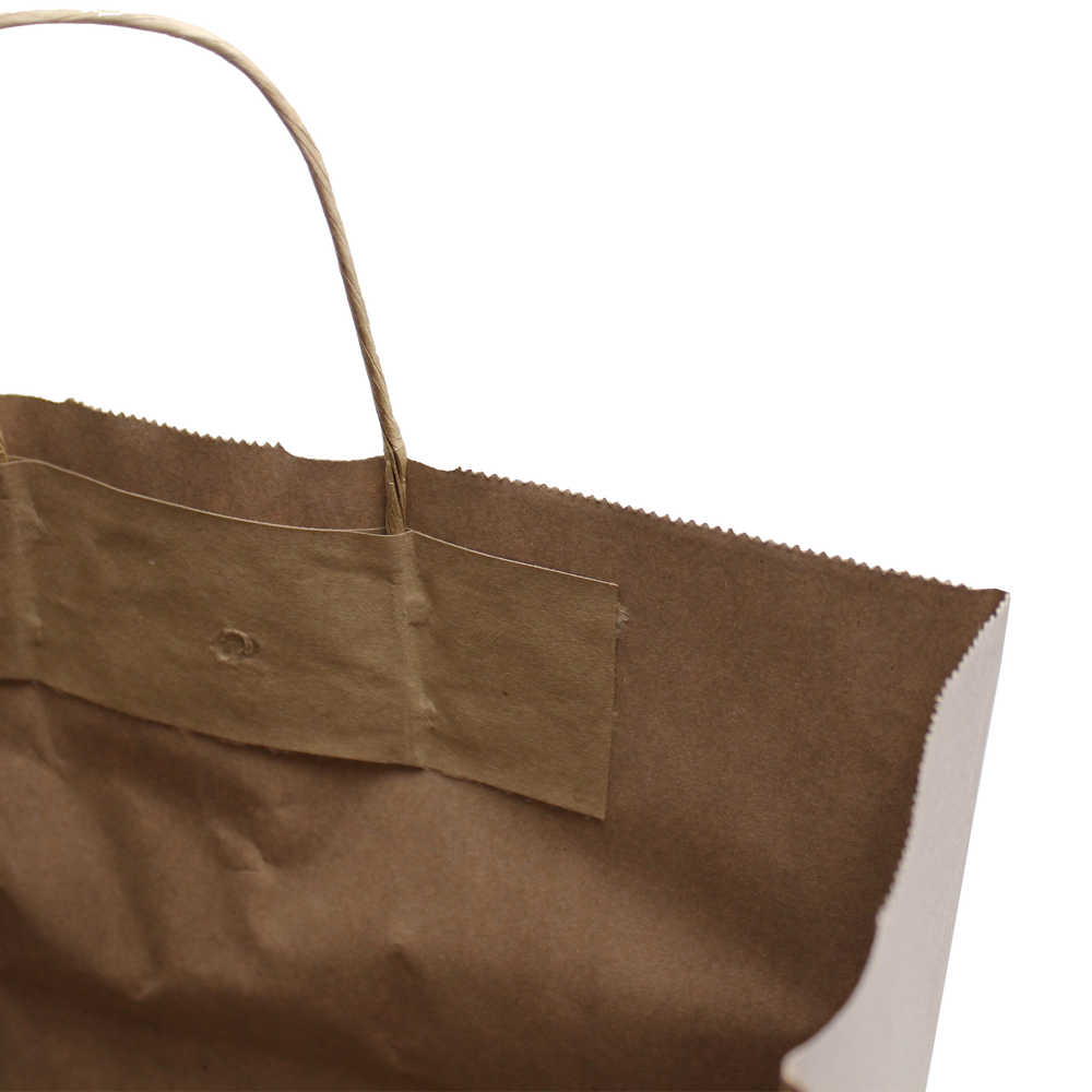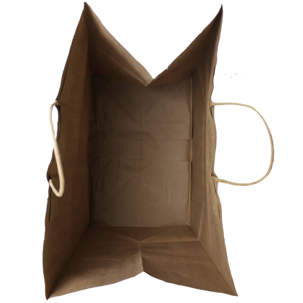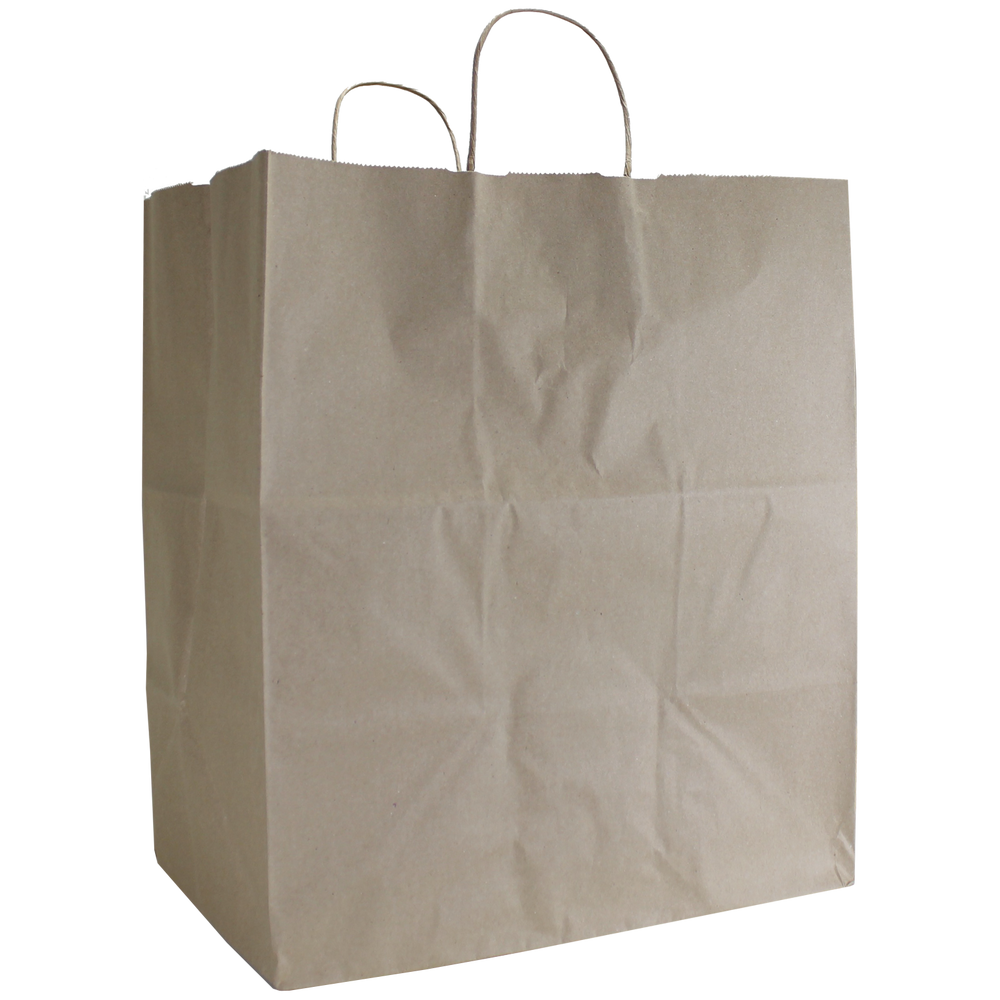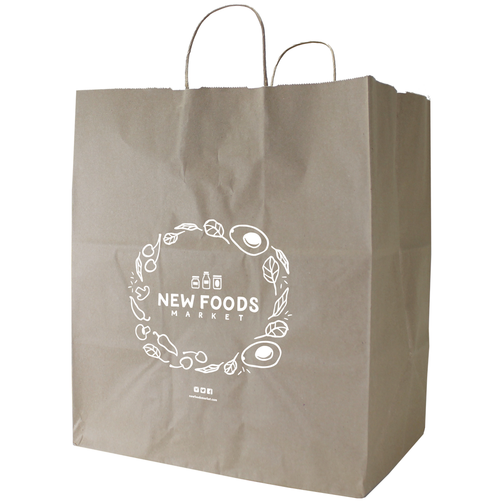Search our selection of custom printed kraft paper bags. These extra-large kraft paper bags are made from 100% recycled material and are a perfect size for restaurants or other food businesses. This recyclable paper bag will show the full extent of your logo whether it’s a fully designed vector art image or just text. We also offer free design services to help you create a design if you don’t have one. A low wholesale pricing is available to anyone who can reach the low minimum order amounts.