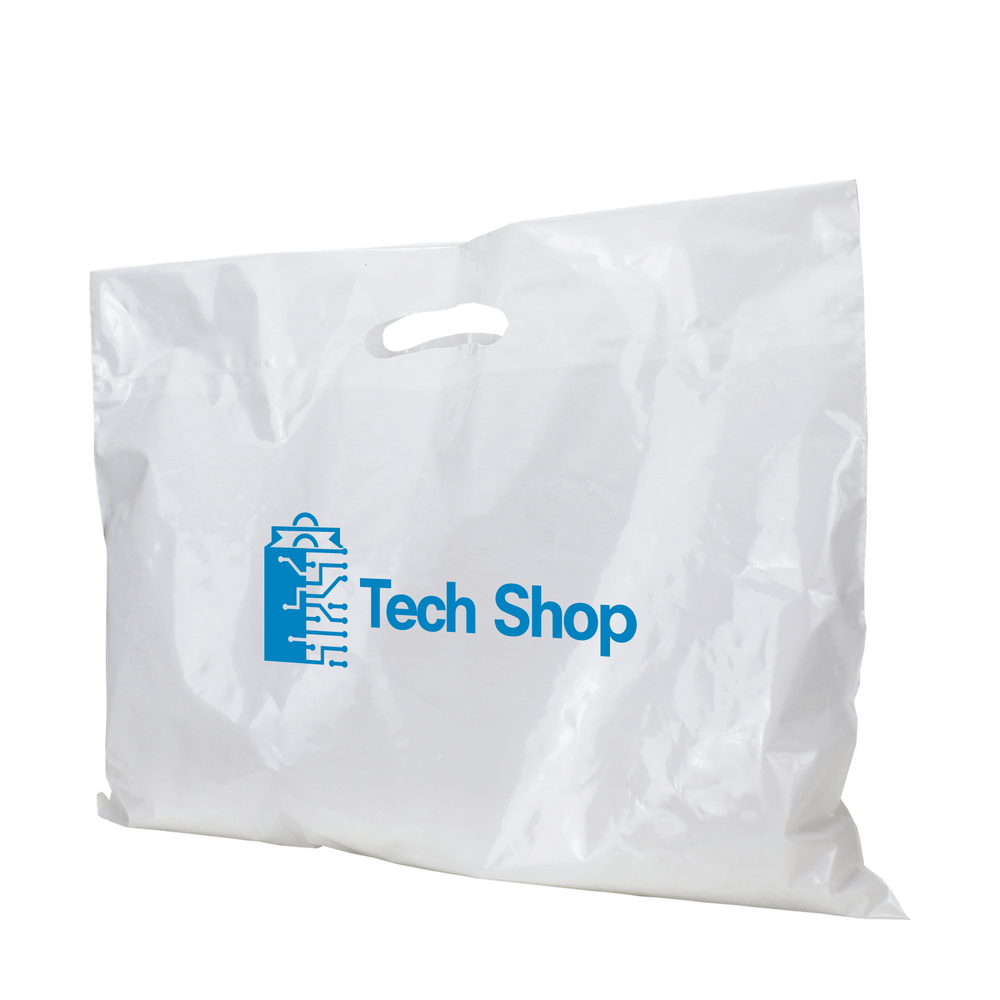 Our Extra Wide Die Cut Plastic Bags boast an impressive 16" W x 13" H size, making them ideal for carrying large loads. They are manufactured using high quality, low density film and are completely recyclable. These bags can be customized with your logo, message, or custom artwork, making them perfect for perfect for small businesses, school functions, conferences and more. A low wholesale pricing is available to anyone who can reach the low minimum order amounts.