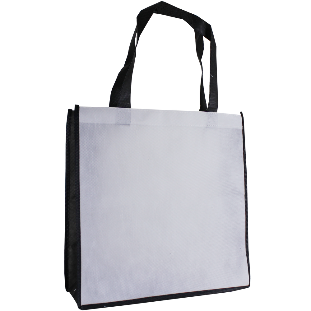 Have a full color design you want to showcase? Look no further than the Full Color Express Lane Tote bag! This tote bag with its 13” W X 5” X 13” H dimensions allows you to do a full color design on up to both sides of the bag. Made out of P.E.T nonwoven material this bag comes with two blank white sides available to showcase your custom design. Whether your design consists of a few lines of text, clip art, or a fully designed vector art image this bag’s imprint area gives you great room to experiment with. We also offer free design services to help you create a design and fill up the space this bag gives you. These full color totes are great for non-profits, school functions, and more. A low wholesale pricing is available to anyone who can reach the low minimum order amounts.