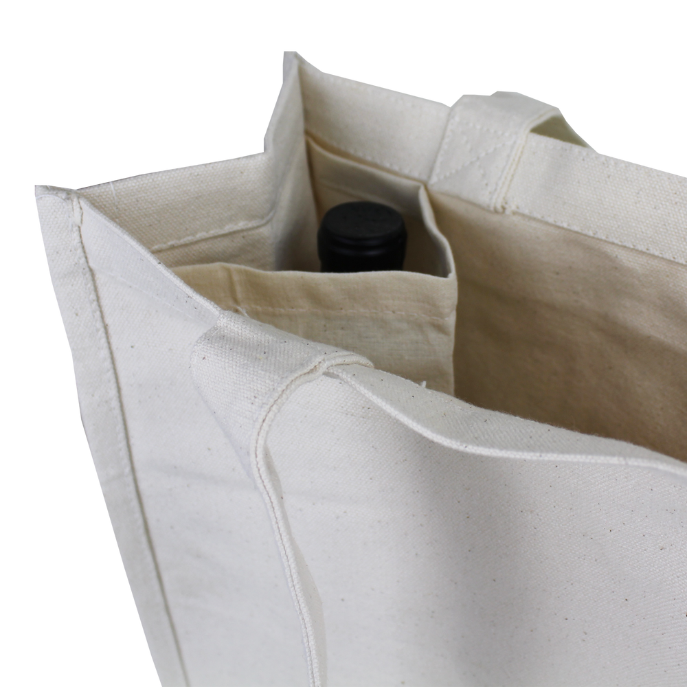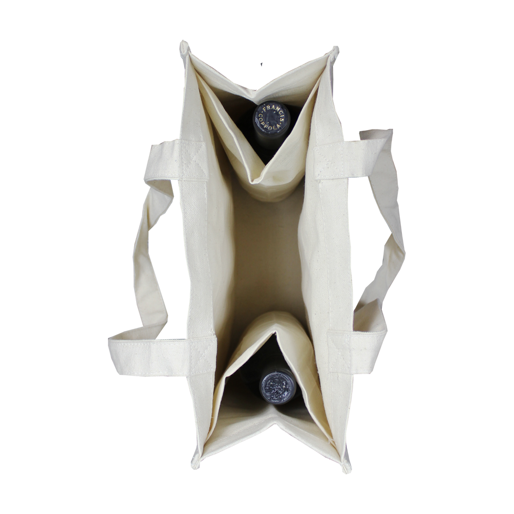 Prevent smashed groceries and broken wine bottles with the heavyweight cotton Wine and Dine Bag. This Wine and Dine Tote Bag is a traditional cotton tote with built-in bottle holder pockets; it’s perfect for holding anything from oil to wine bottles. The heavyweight cotton Wine and Dine Bag is made from durable heavyweight cotton canvas that can handle the weight of a grocery haul while protecting delicate bottles. These bags come in a 13” x 13” x 5” size, and have a 8” by 8” imprint area you can use for your logo or custom message. You can reach multiple people and advertise in many places with your name or message on a grocery bag. Reap the many benefits of custom wine bags with your logo and order bulk heavyweight cotton Wine and Dine Bags today.