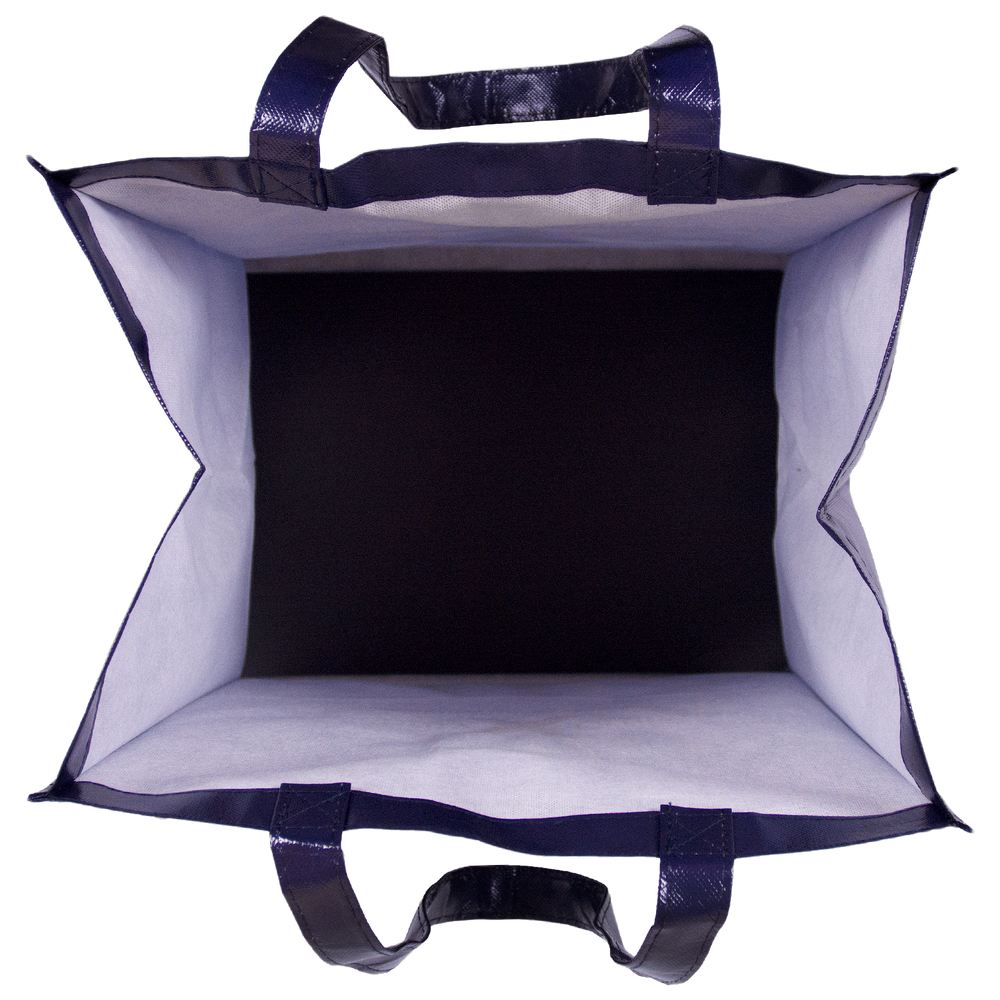 Each bag comes with a bottom-layering insert that helps to sturdy the plastic-like bag for heavy loads, double-stitched reinforced handles, and an appreciated spacious 10-inch gusset depth. With their premium-grade 110 GSM polypropylene, these bags are durable and recyclable. The laminated Big Storm grocery bag offers it all, from function to design. Print your designs on the laminated Big Storm grocery bags. Design a bag that many will love and use, broadcasting your name and message wherever they go.