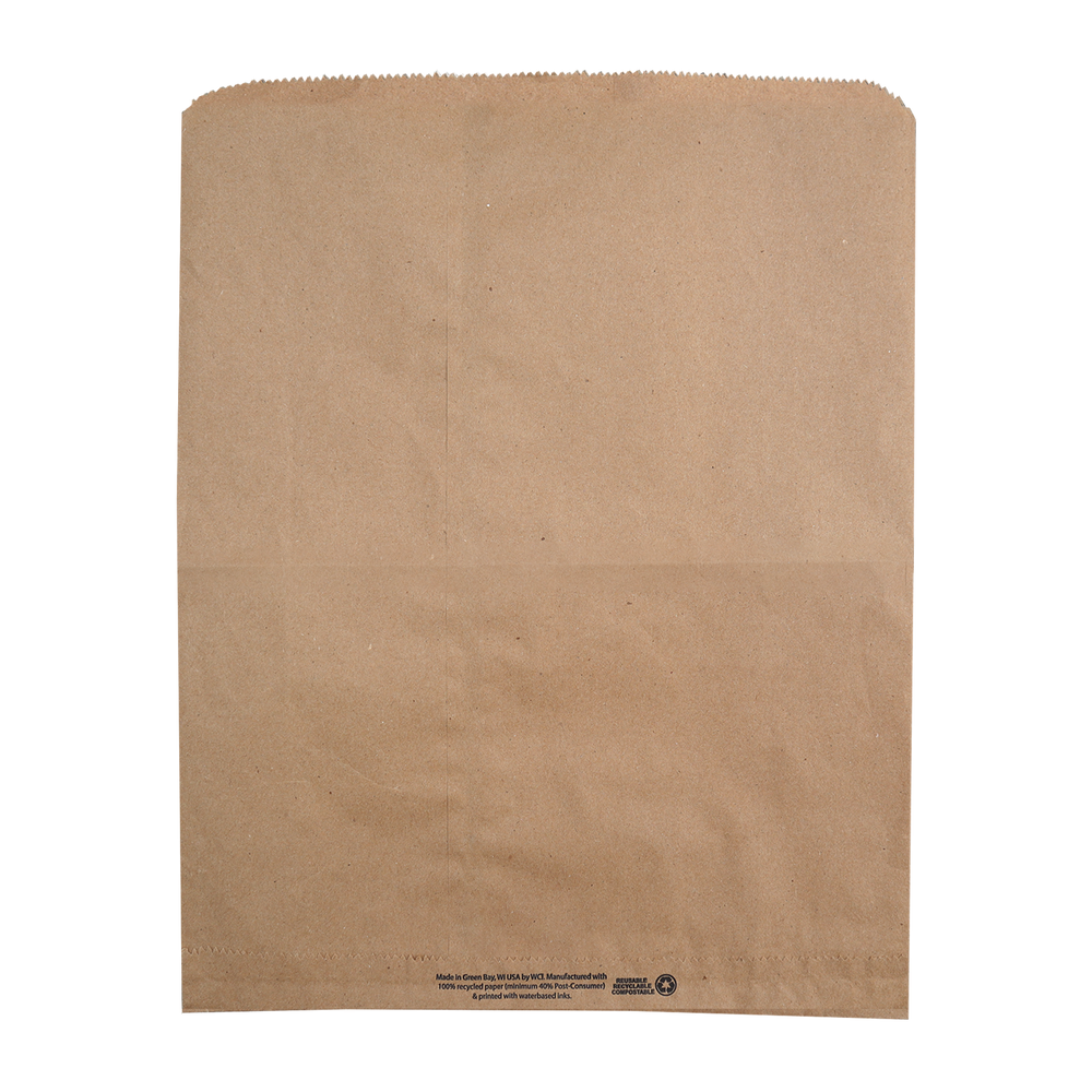 Take your promotion to the next level with our stylish and practical merchandise bags! Designed with a serrated top for a touch of sophistication, the natural Kraft option is made from 100% recycled materials, making it an eco-friendly choice. Measuring 12” x 15”, these bags are ideal for museums, gift shops, arts and crafts stores, and beyond. Personalize them with up to 2 spot colors on one or both sides (note: 1/2" spacing is required for 2-color designs). Boost your brand’s visibility and sustainability with these versatile and eye-catching bags!