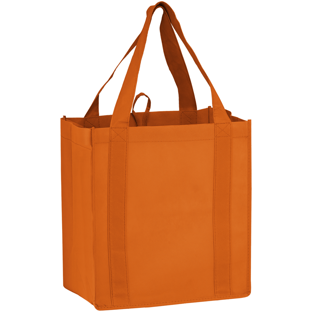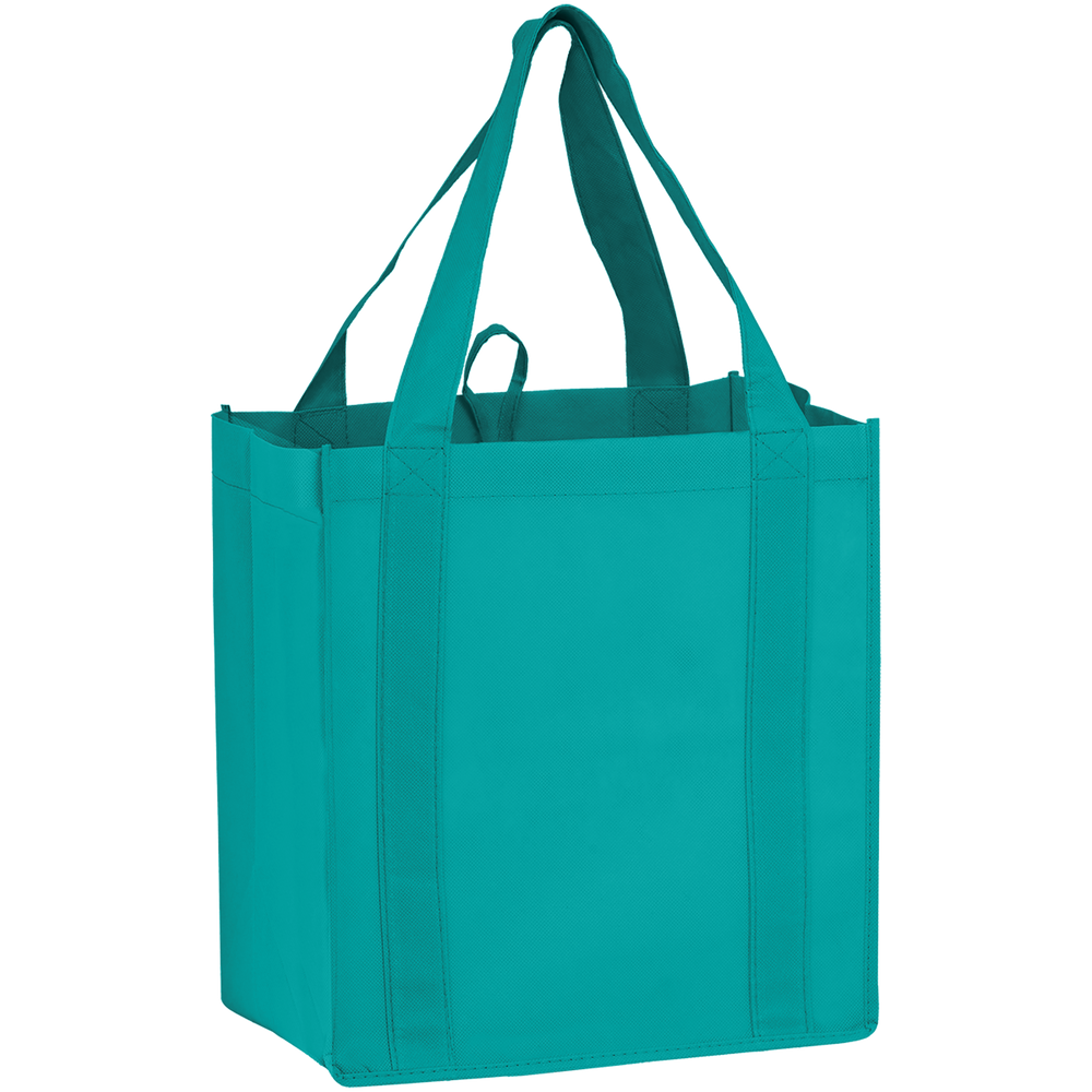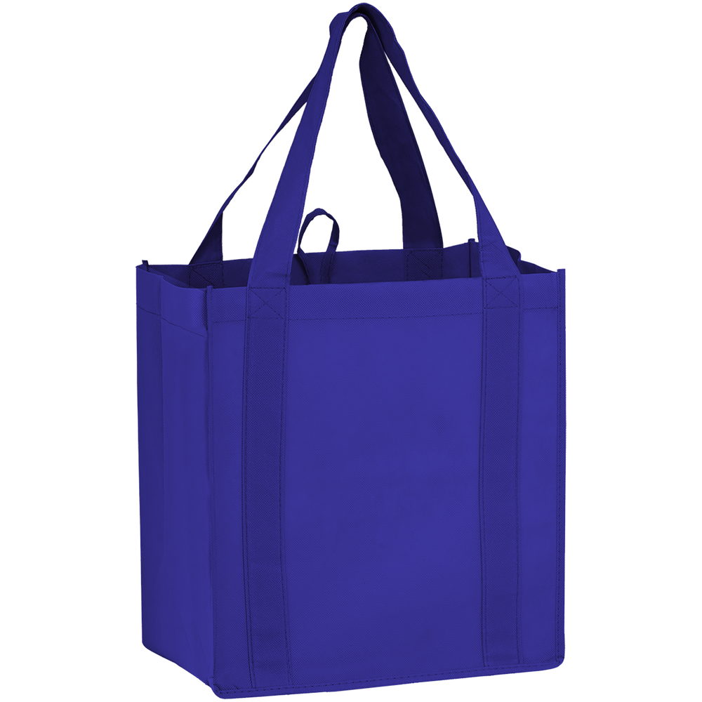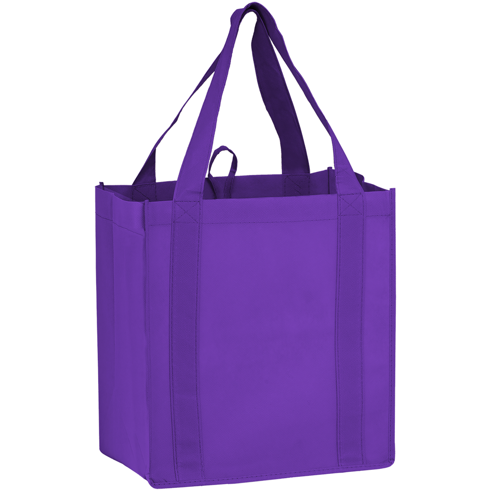 Promotional grocery bags in the ‘Little Storm’ styles are handy consumer carryalls for public events and shopping mall visits. All imprinted shopping bags that are offered in convenient 13-inch-tall formats provide consumers with the desirable easy-save benefits that are found in most traditional paper, cloth and plastic shopping bags. Reusable branded bags are often favored by consumers when storage is possible without size-related issues. Our sturdy 100 GSM-weight personalized grocery bags provide the strength of upper-quality polypropylene that is coupled with full bag-height reinforced handles. The full-length reinforced straps act to sturdy the custom grocery bag panels to act as mobile billboards for important imprinted logo images or targeted consumer ads.