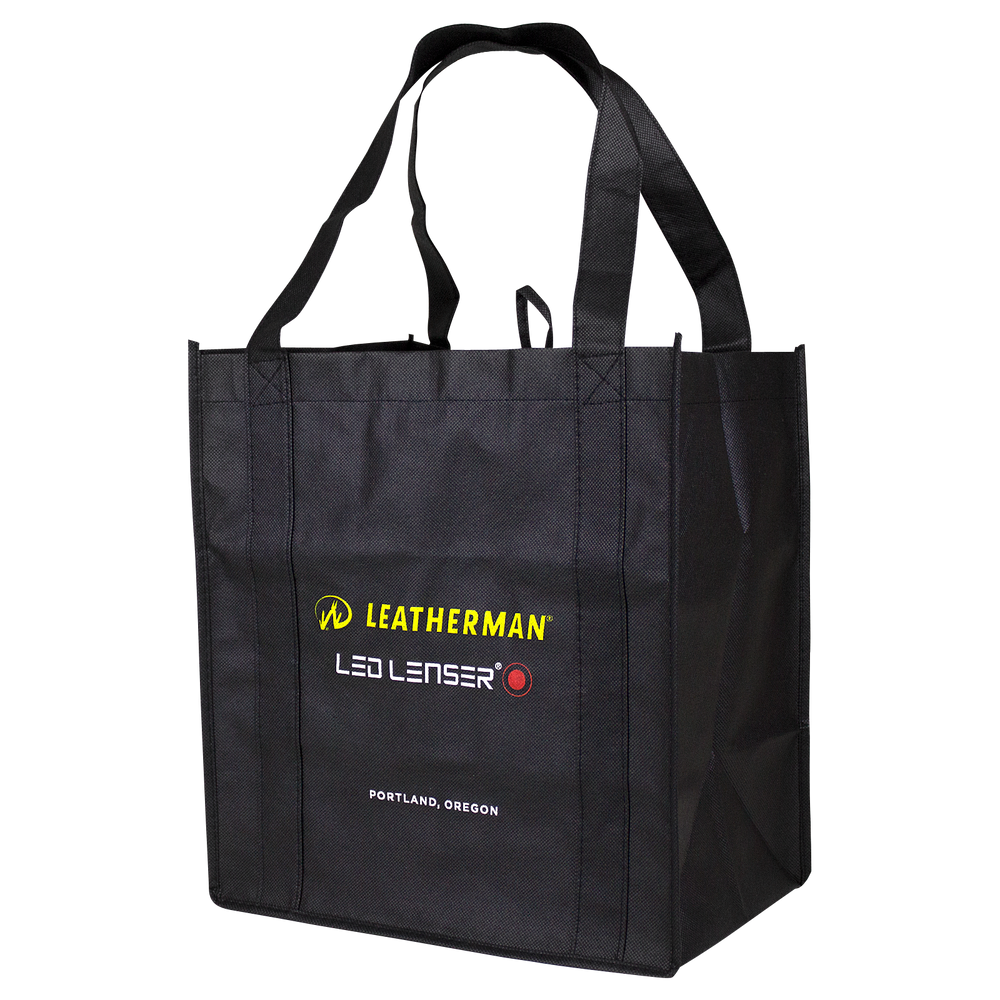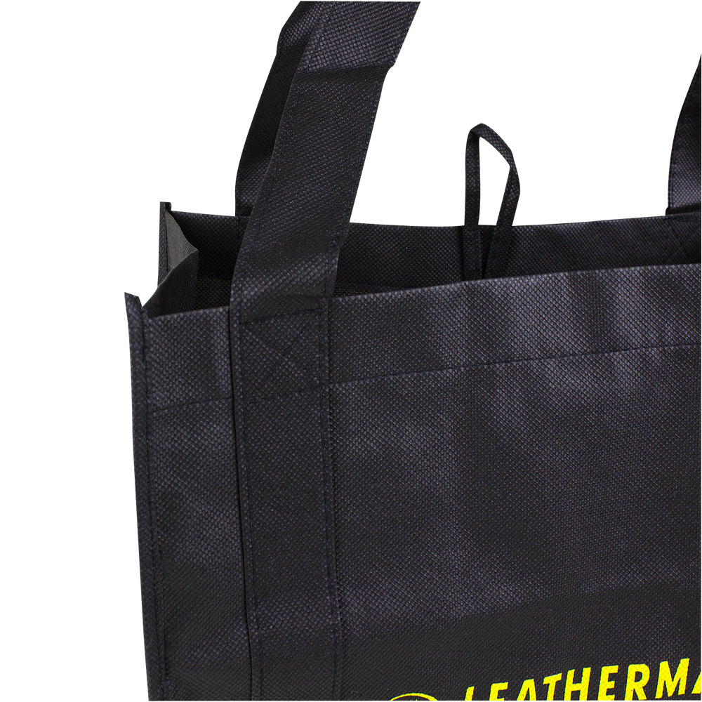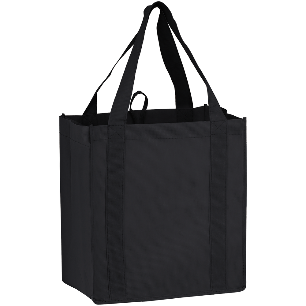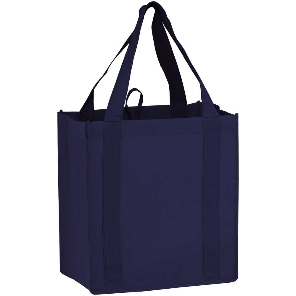 Promotional grocery bags in the ‘Little Storm’ styles are handy consumer carryalls for public events and shopping mall visits. All imprinted shopping bags that are offered in convenient 13-inch-tall formats provide consumers with the desirable easy-save benefits that are found in most traditional paper, cloth and plastic shopping bags. Reusable branded bags are often favored by consumers when storage is possible without size-related issues. Our sturdy 100 GSM-weight personalized grocery bags provide the strength of upper-quality polypropylene that is coupled with full bag-height reinforced handles. The full-length reinforced straps act to sturdy the custom grocery bag panels to act as mobile billboards for important imprinted logo images or targeted consumer ads.