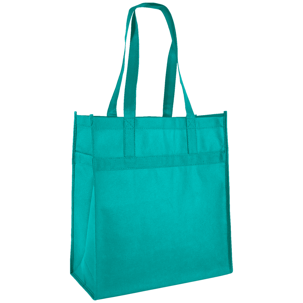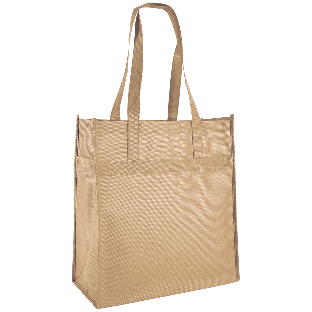 Our ‘Little Tex’ reusable grocery bag is made from washable non-woven polypropylene (NWPP) materials. This type of carryall tote offers an eco-friendly NWPP canvas-like bag that is made with reinforced handles that are tested to hold up to 30-pounds. ‘Little Tex’ bags offer nicely framed panels for large 8-inch by 8-inch personalized logos, club names or corporate artwork that can be silkscreen imprinted in a multicolor process that produces impressive results. Promotional totes and custom shopping bags are top-notch advertising aides for booth shows, public events and everywhere promo bags are carried.