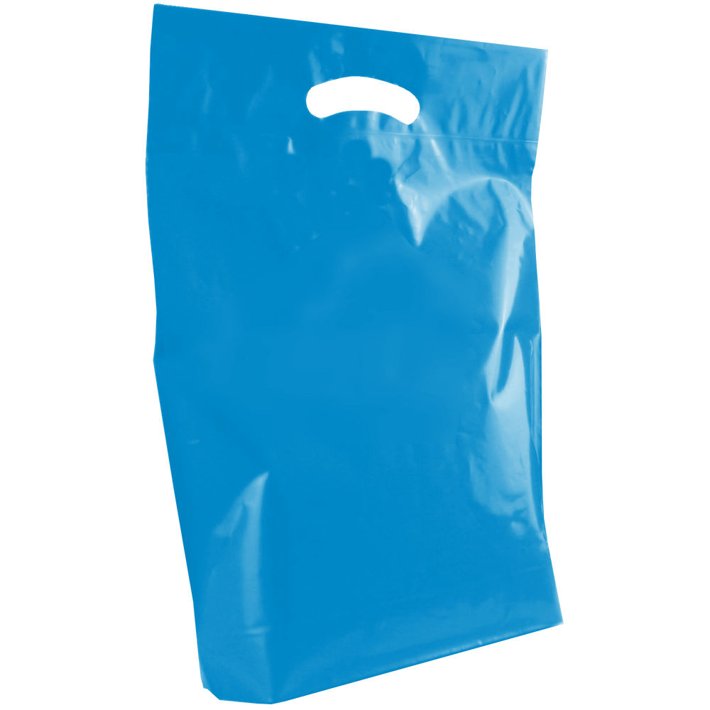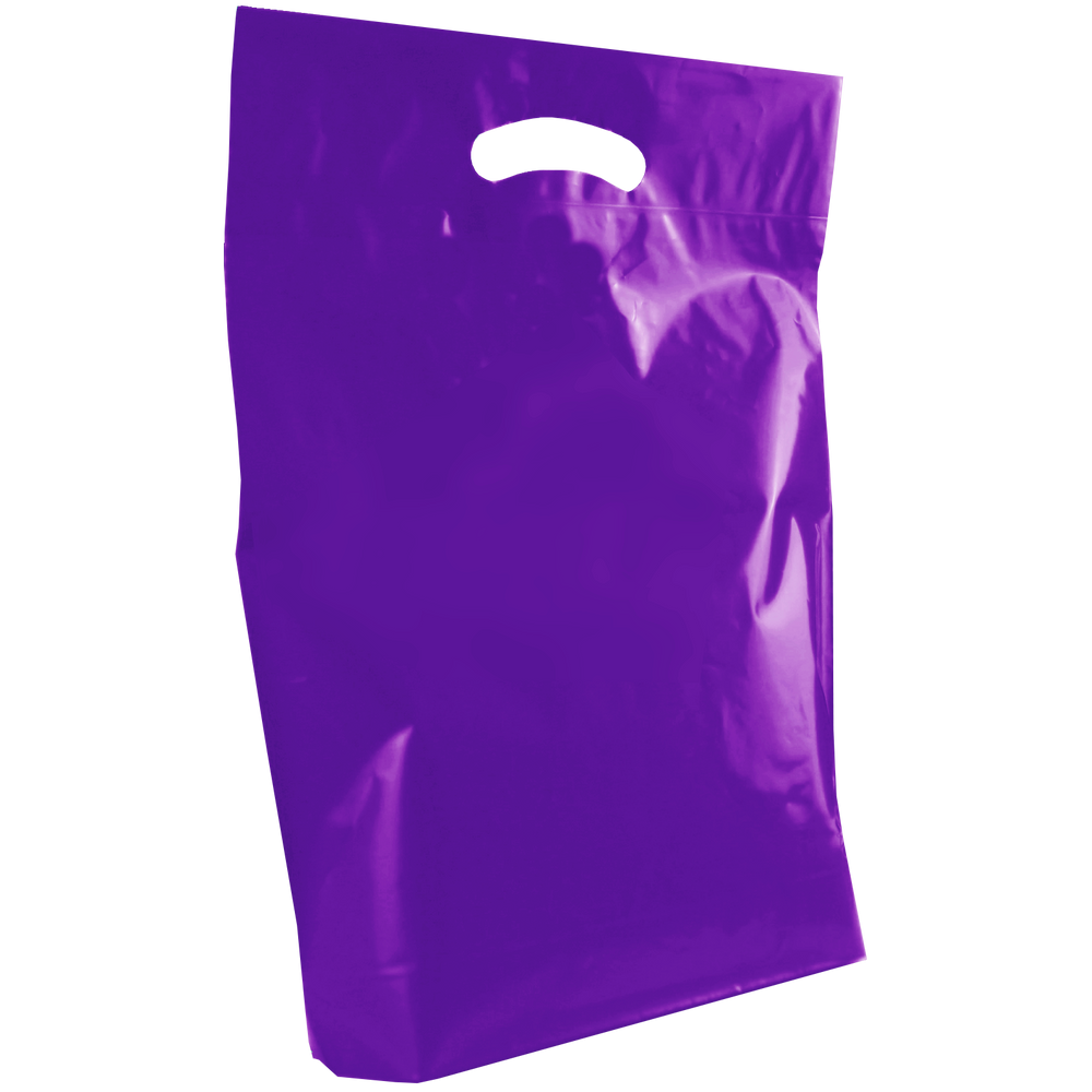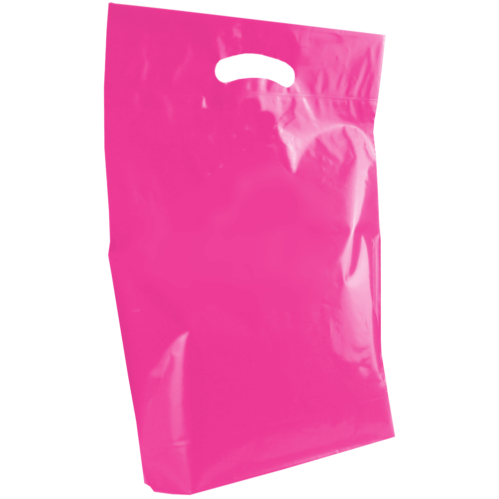 View and purchase from our selection of custom printed die cut plastic bags. Whether you just have text or a fully designed vector art image, this die cut bag’s imprint area will let you showcase your design to its full extent. We also offer free design services to help you create a design if you don’t have one. These medium die cut plastic bags have reinforced handles and are both recyclable and eco-friendly. Made up of low density film these medium die cut bags come in an array of colors with different decoration methods. These plastic bags would be perfect for small businesses, school functions, conferences and more. A low wholesale pricing is available to anyone who can reach the low minimum order amounts.