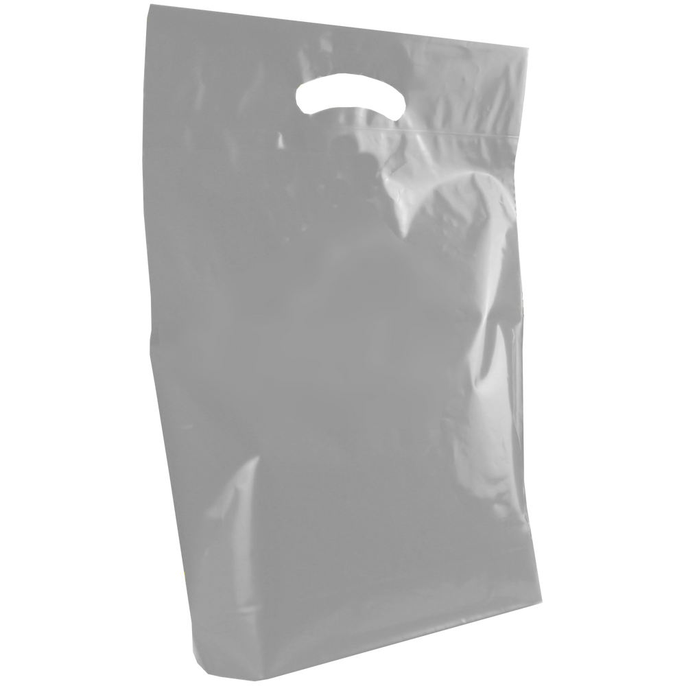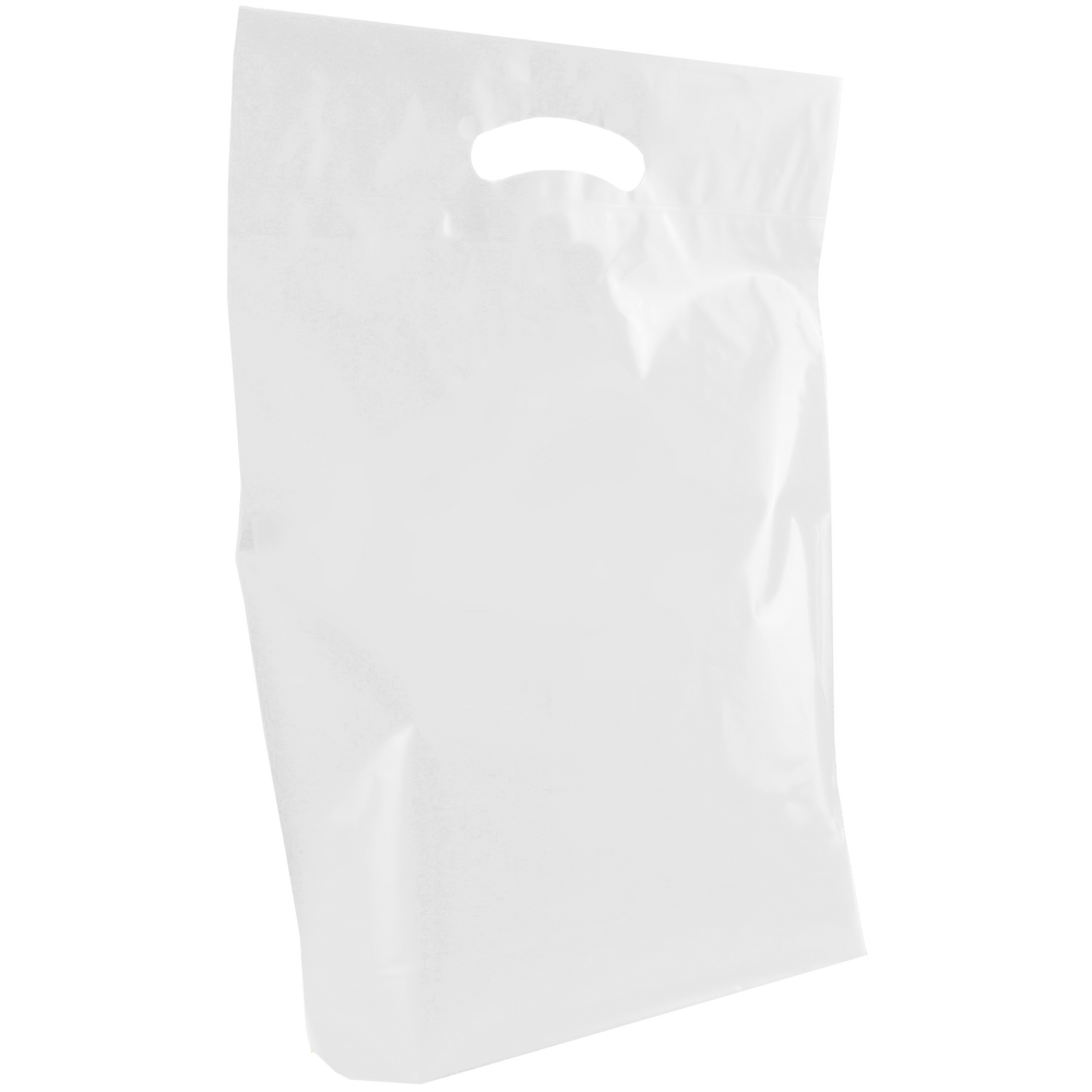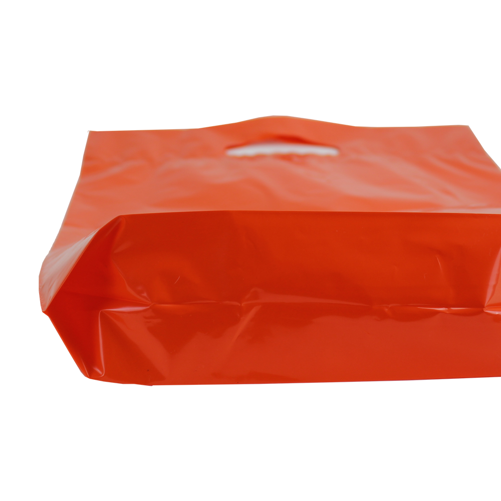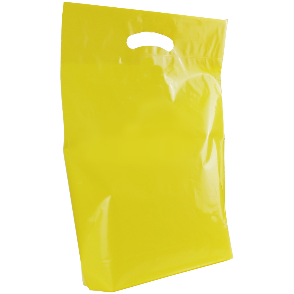 View and purchase from our selection of custom printed die cut plastic bags. Whether you just have text or a fully designed vector art image, this die cut bag’s imprint area will let you showcase your design to its full extent. We also offer free design services to help you create a design if you don’t have one. These medium die cut plastic bags have reinforced handles and are both recyclable and eco-friendly. Made up of low density film these medium die cut bags come in an array of colors with different decoration methods. These plastic bags would be perfect for small businesses, school functions, conferences and more. A low wholesale pricing is available to anyone who can reach the low minimum order amounts.