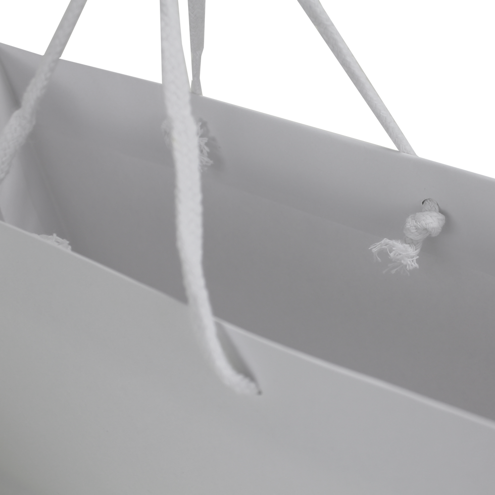 Shop our selection of custom printed laminated gift bags. These medium shopping totes feature a glossy finish, reinforced cord handles, and a cardboard bottom insert. They come in a variety of colors with different decoration methods. The laminated bags would be perfect for your store, boutique shop for gift wrappings, giveaways, or school events, just to name a few. Take advantage of our wholesale pricing available to anyone that can meet the low minimum order requirement. The large imprint area can be used for your company logo, simple text all the way to a full design with clip art or other vector works of art. We do free design services so we can create your design if you don't have one.