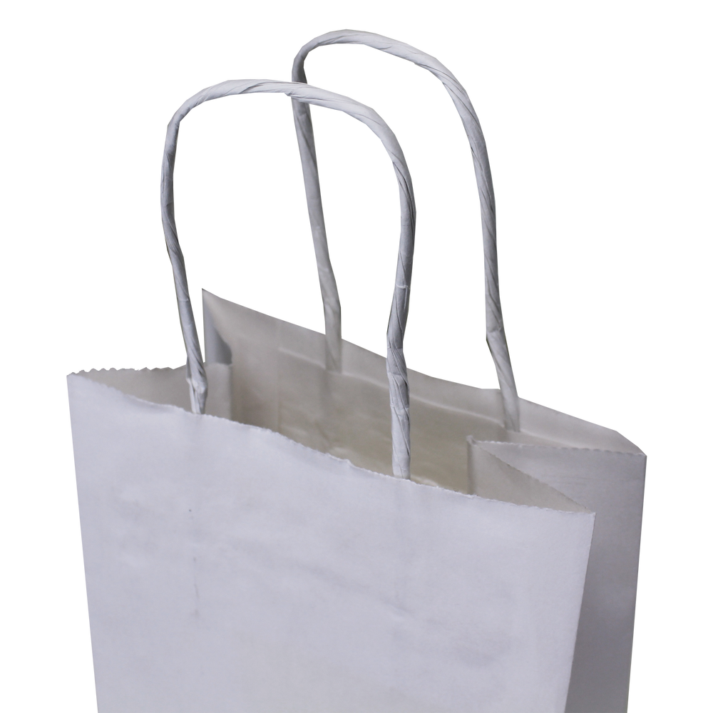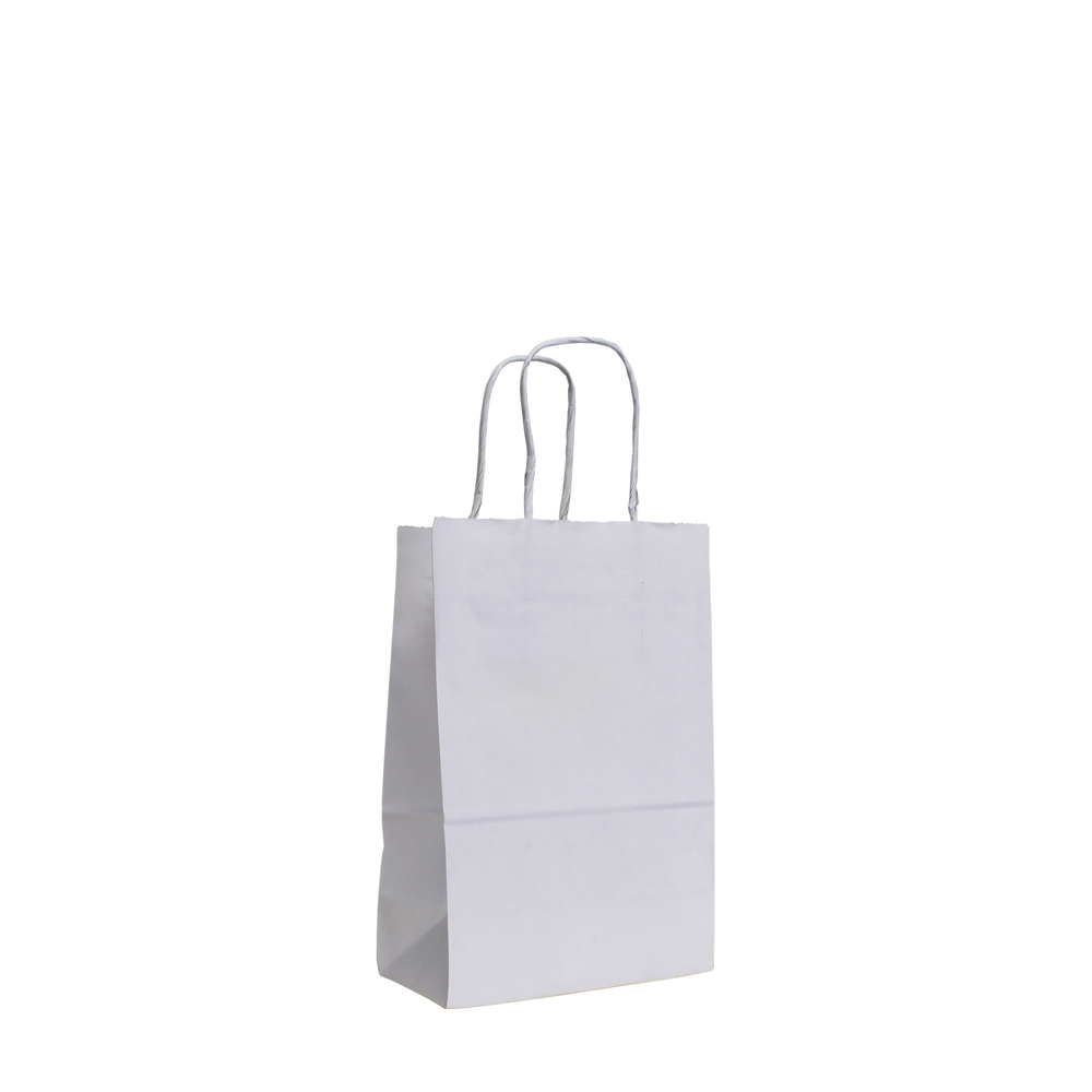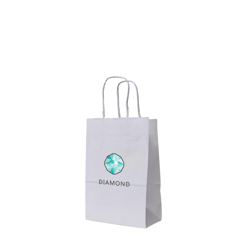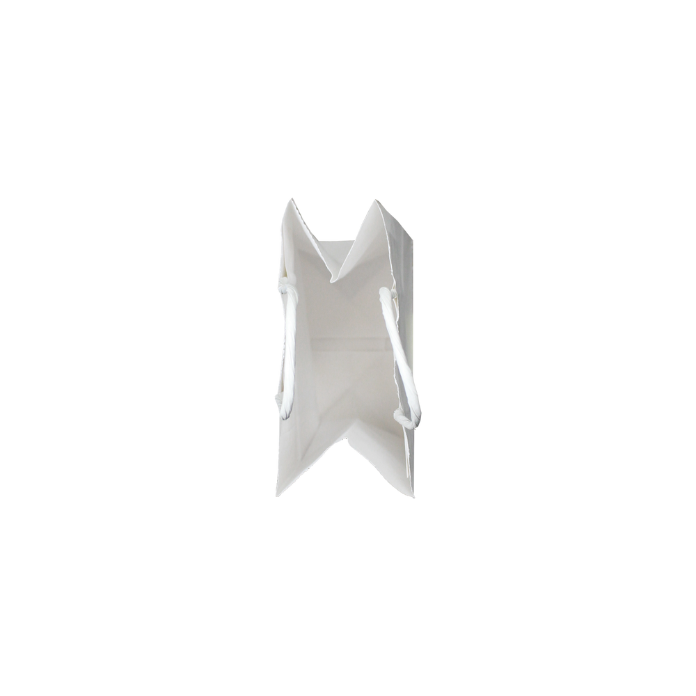 Our Mini White Paper Shopper Bag is ideal for carrying your smallest goods like jewelry, confectionaries, and small promotional materials. They're perfect for retail stores, gift shops, conventions, and more! These bags are made from 100% white kraft paper and can be reused or recycled when you're done with them. This bag can be customized with the logo, message, or artwork of your choice.