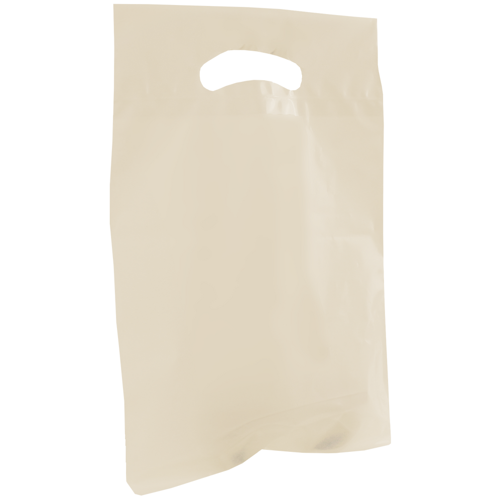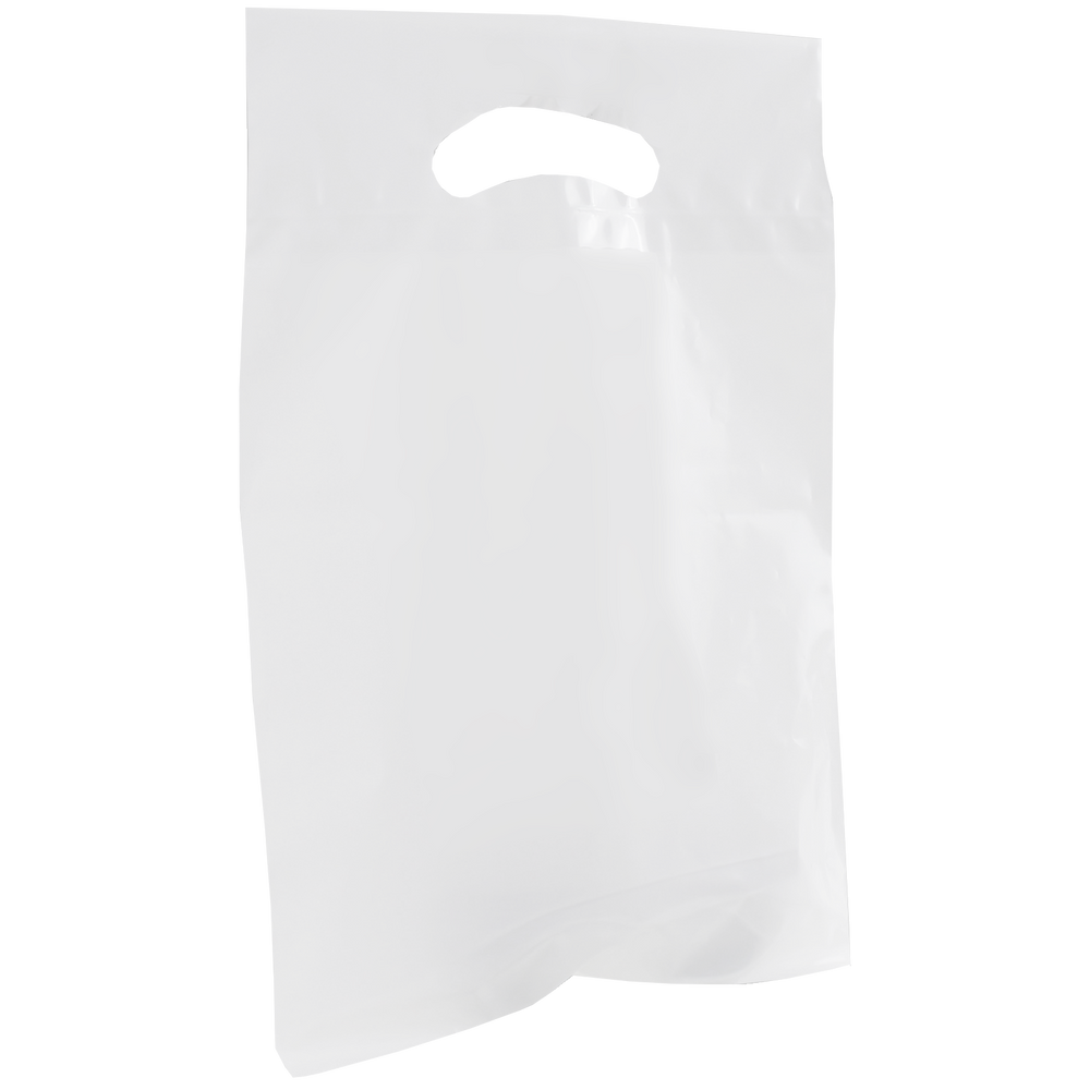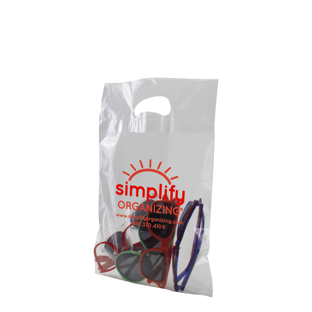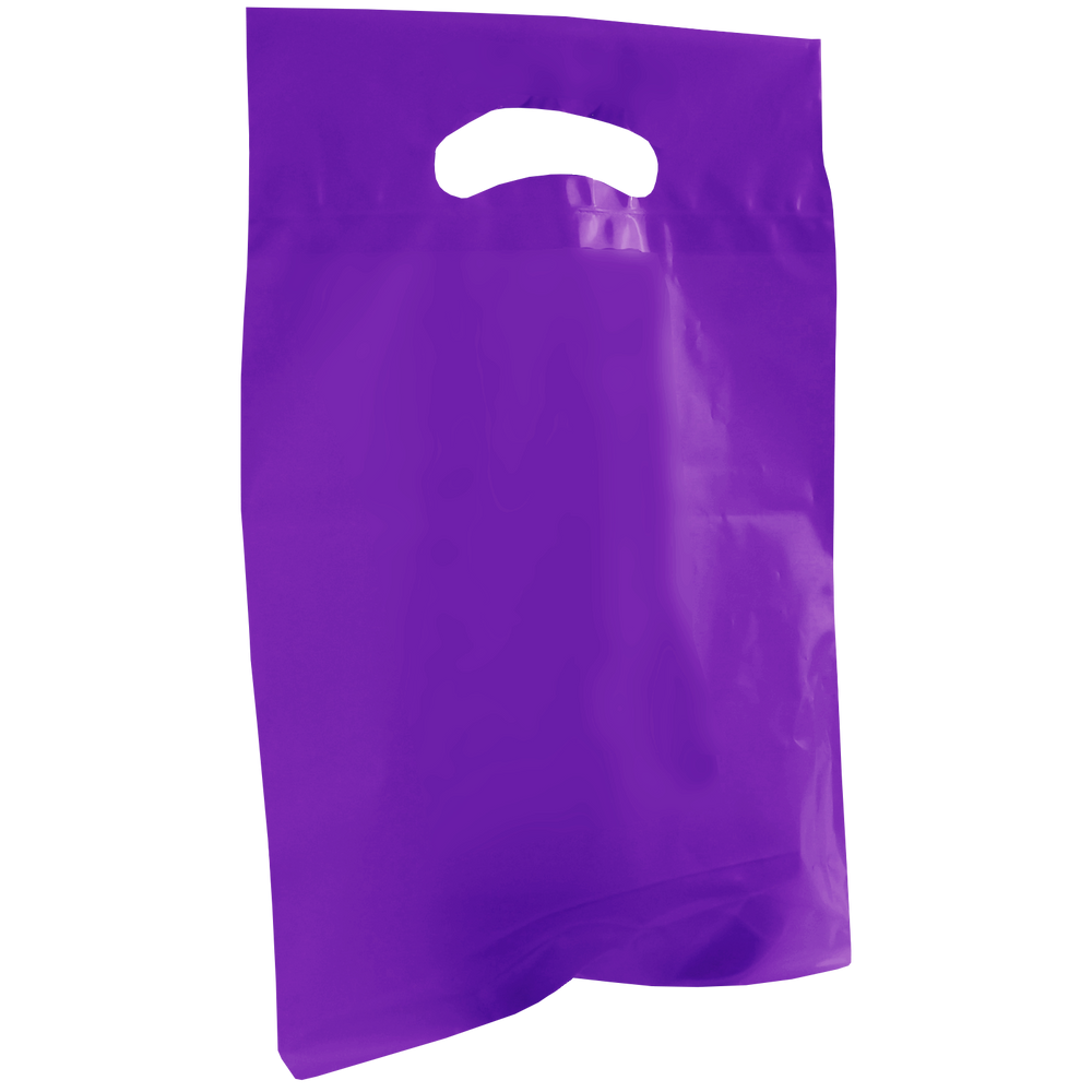 Survey and choose from our selection of custom printed die cut plastic bags. These small die cut plastic bags have reinforced handles and are both recyclable and eco-friendly. Made up of low density film these small die cut plastic bags come in an array of colors with different decoration methods. These die cuts bags would be perfect for small businesses, school functions and giveaways. Whether you just have text or a fully designed vector art image this die cut bag’s imprint area will let you showcase your design to its full extent. We also offer free design services to help you create a design if you don’t have one. Take advantage of our wholesale pricing available to anyone that can meet the low minimum order requirement.