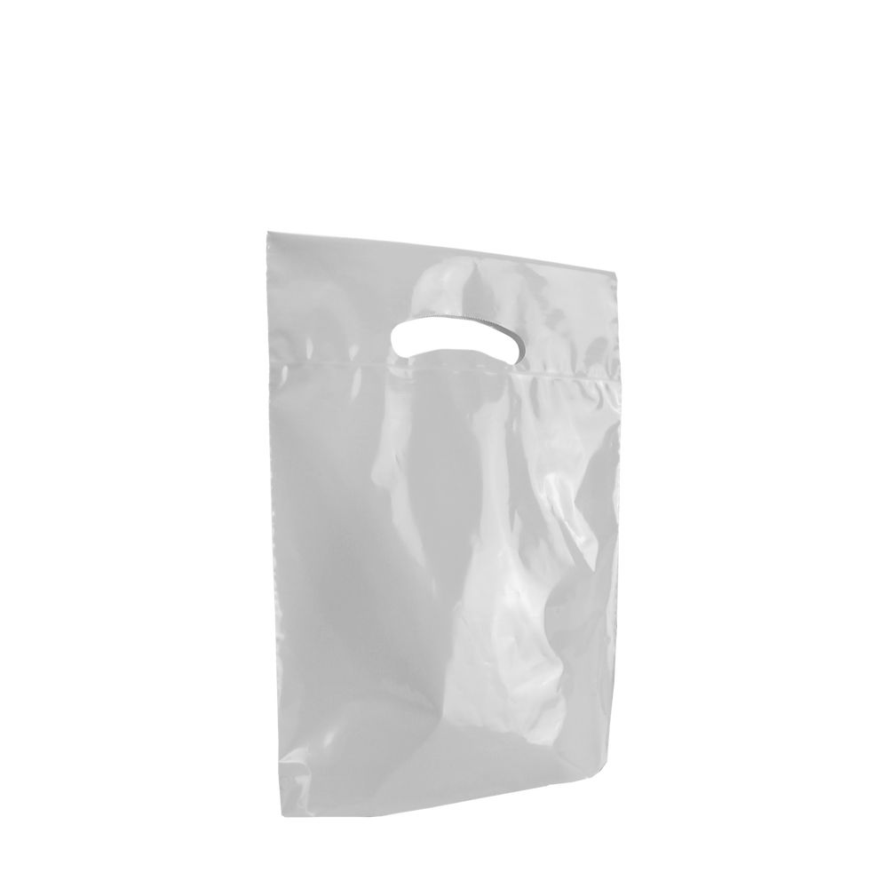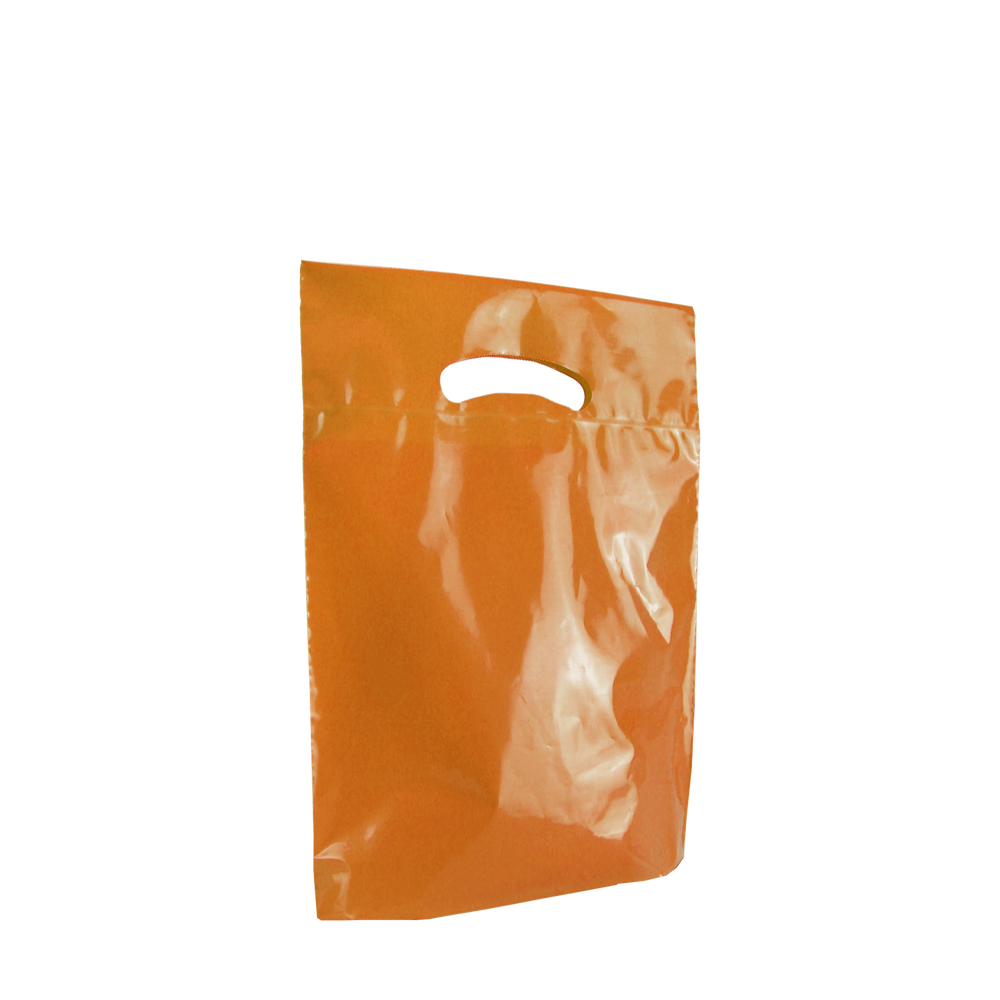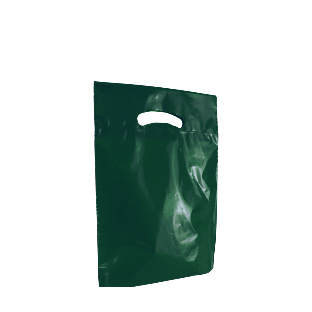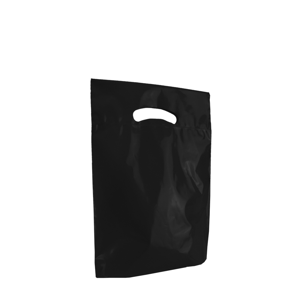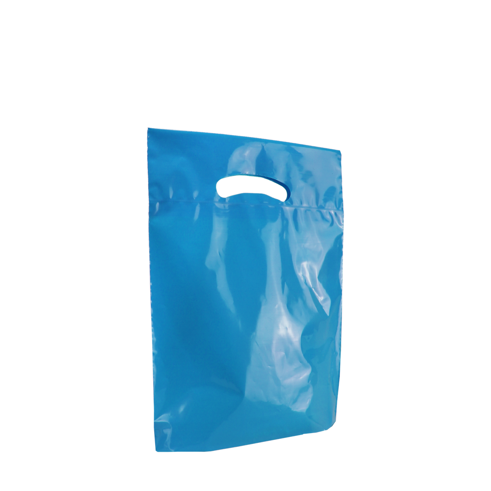 Our Small Eco-Friendly Die Cut Plastic Bags measure 9" W x 12" 5 with a 2" Gusset, making them ideal for packaging and carrying small items like books, clothing, food items, and more. This bag can be customized with a 6" x 6" imprint of your choice. Made out of 100% recyclable materials, this bag is not only good for your business, but also good for the environment.