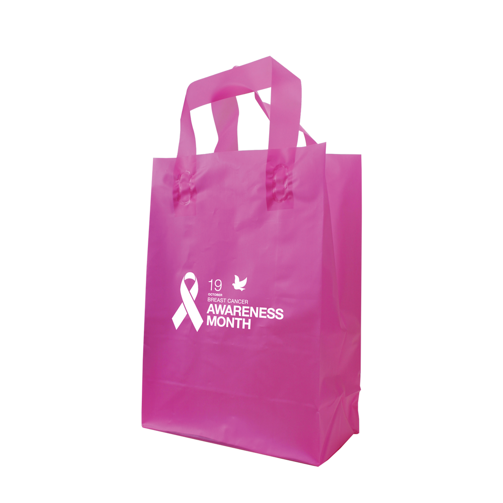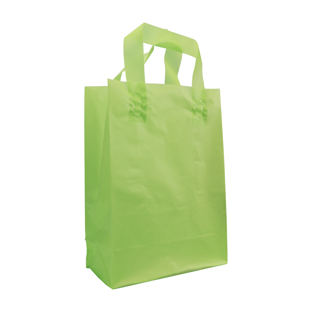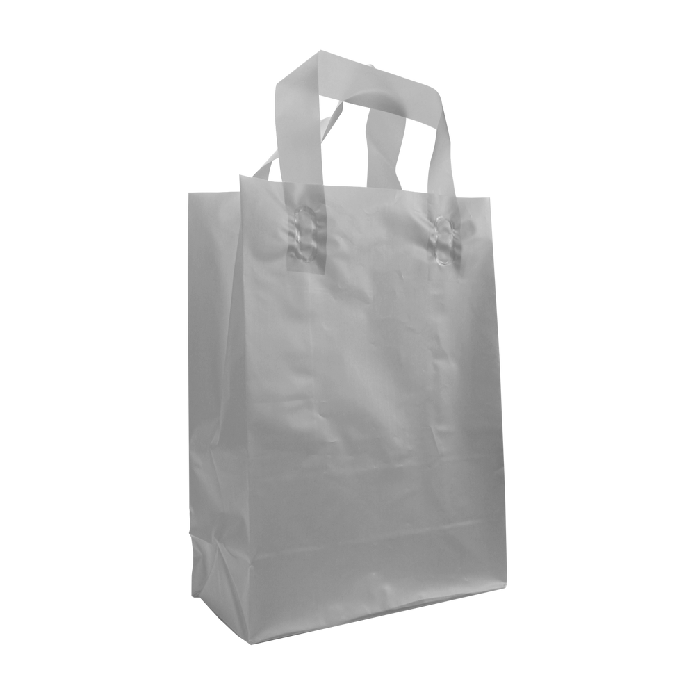 Our Small Frosted Plastic Shopper is a not-so-basic, but affordable bag you can provide to your customers. Made out of frosted high density film for a strong & sturdy carry. This plastic shopper bag comes with soft loop handles for easy transport, securely attached to the body of the bag, and a bottom insert for extra stability. This bag can be customized with a 5”W x 4”H, matte or metallic, foil stamp.