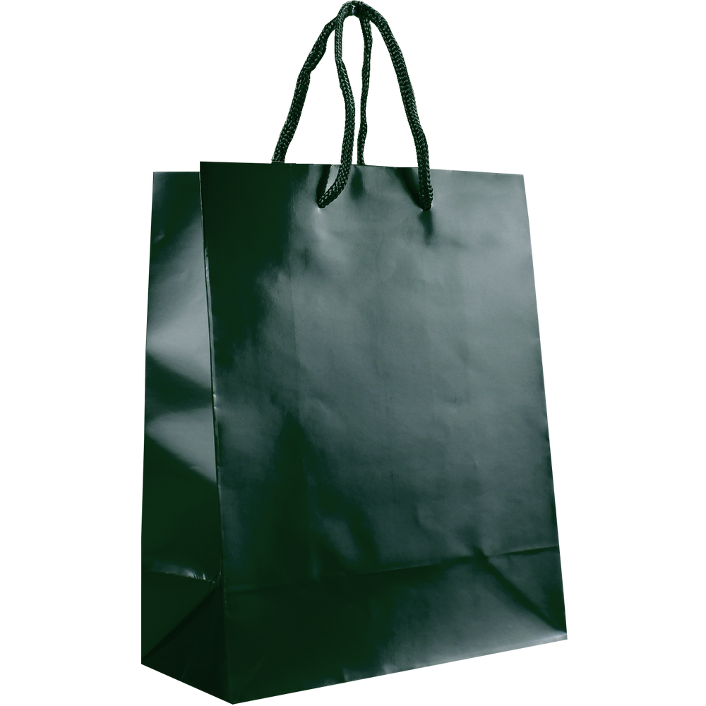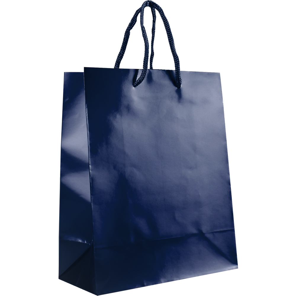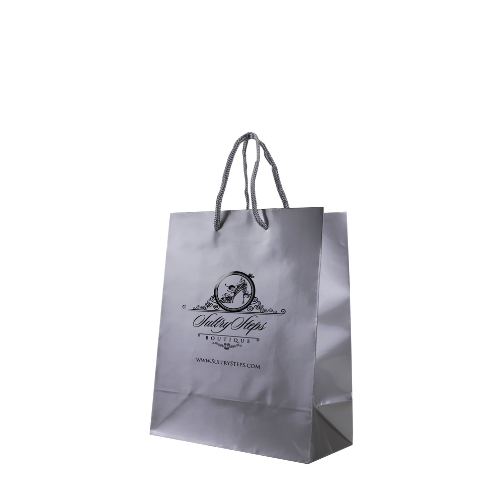 Shop our selection of custom printed laminated paper bags. These small shopping totes feature a glossy finish, reinforced cord handles, and a cardboard bottom insert. They come in a variety of colors with different decoration methods. The laminated bags would be perfect for your store, boutique shop for gift wrappings, giveaways, or school events, just to name a few. Take advantage of our wholesale pricing available to anyone that can meet the low minimum order requirement. The imprint area can be used for your company logo, simple text all the way to a full design with clip art or other vector works of art. We offer free design services so we can create your design if you don't have one.