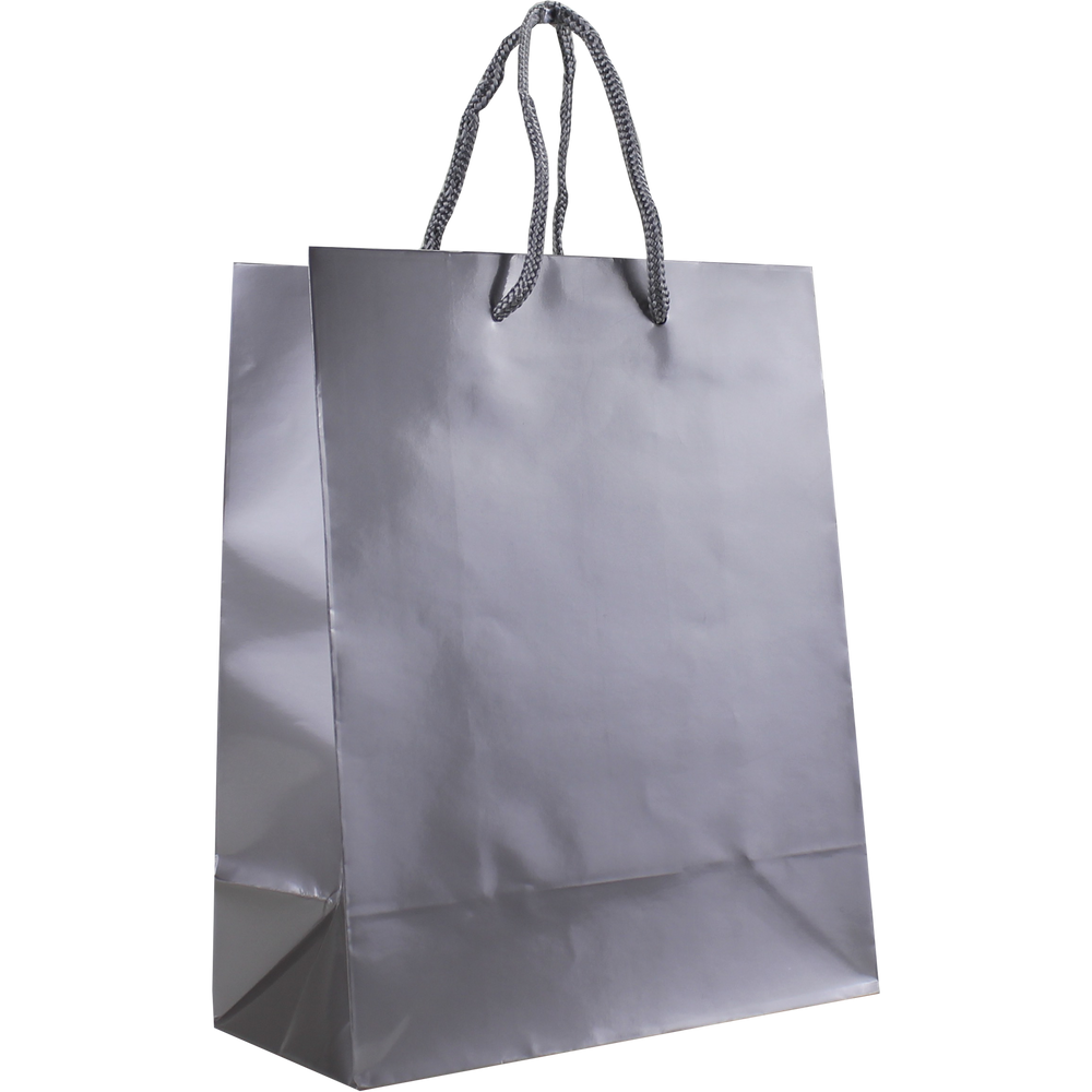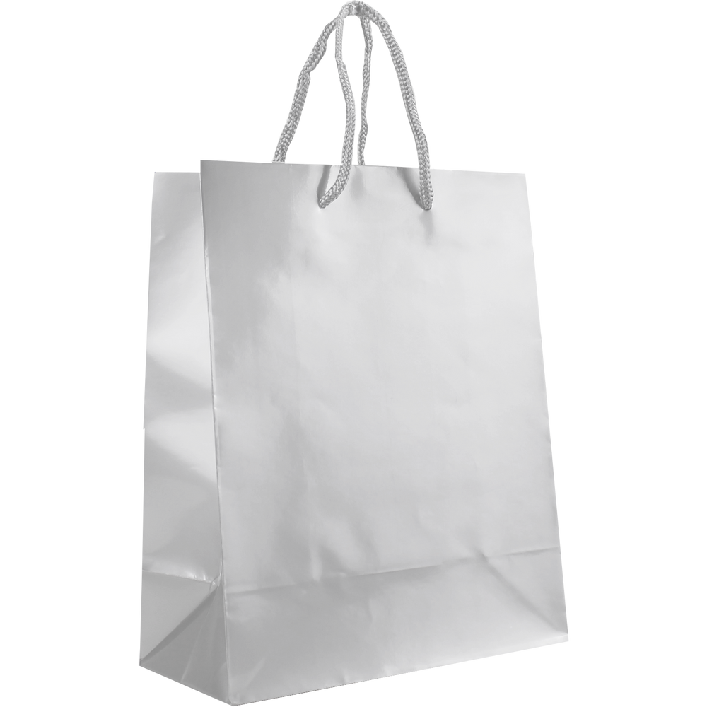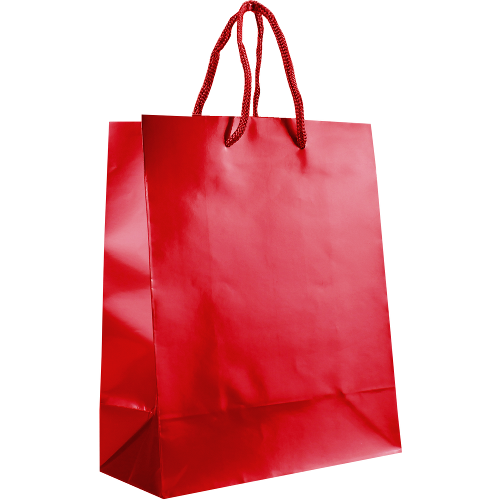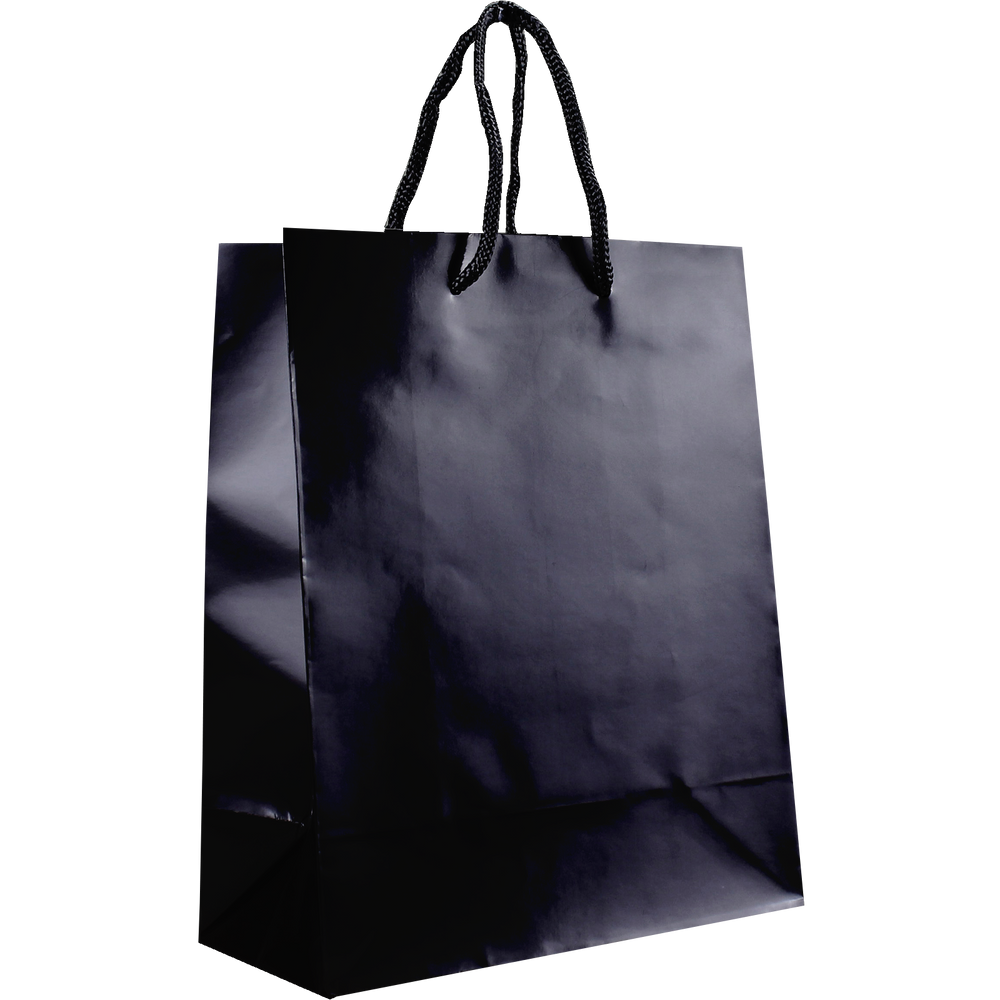 Shop our selection of custom printed laminated paper bags. These small shopping totes feature a glossy finish, reinforced cord handles, and a cardboard bottom insert. They come in a variety of colors with different decoration methods. The laminated bags would be perfect for your store, boutique shop for gift wrappings, giveaways, or school events, just to name a few. Take advantage of our wholesale pricing available to anyone that can meet the low minimum order requirement. The imprint area can be used for your company logo, simple text all the way to a full design with clip art or other vector works of art. We offer free design services so we can create your design if you don't have one.