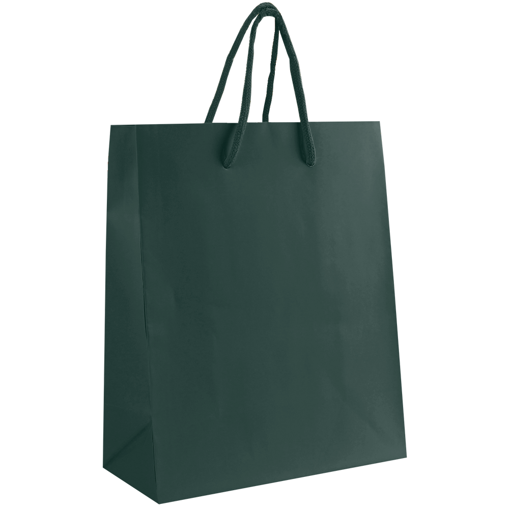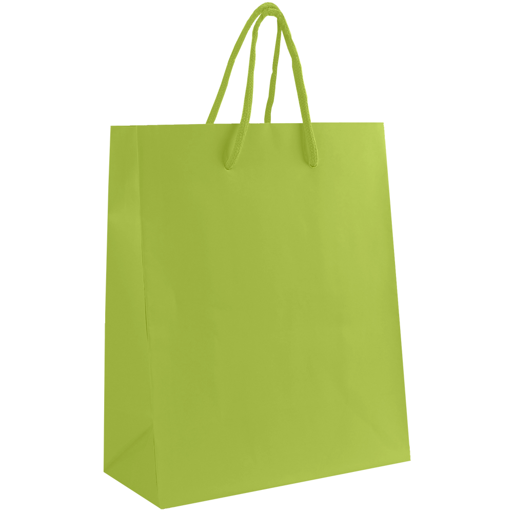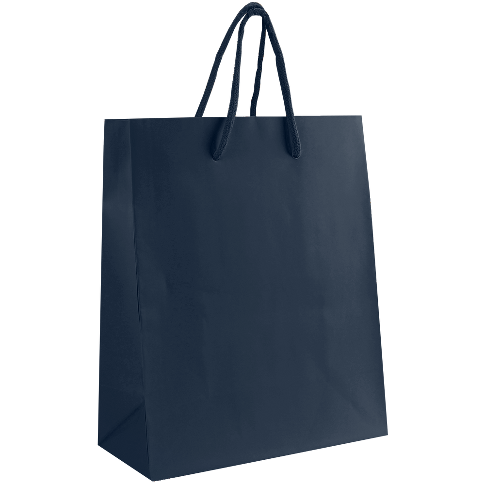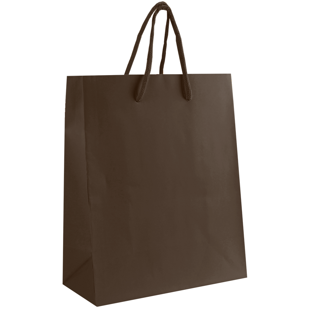Browse and purchase from our selection of custom printed laminated paper bags. These Small Matte Shopper small shopping totes feature a matte finish, reinforced cord handles, and a cardboard bottom insert. They come in a variety of colors with different decoration methods. The laminated matte bags would be perfect for your shop and target gift wrappings, school events and giveaways, just to name a few. Take advantage of our wholesale pricing available to anyone that can meet the low minimum order requirement. The imprint area can be used for your company logo, simple text all the way to a full design with clip art or other vector works of art. We offer free design services so we can create your design if you don't have one.