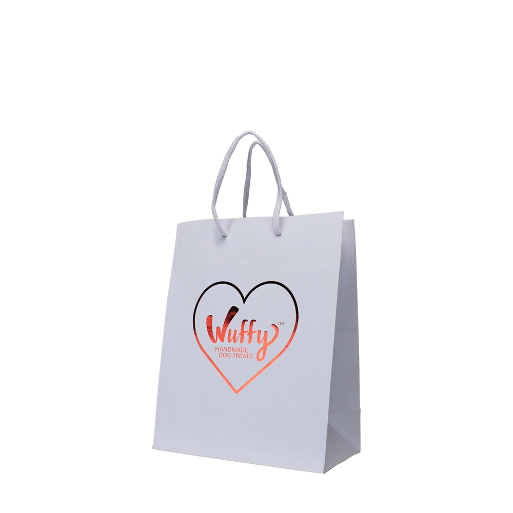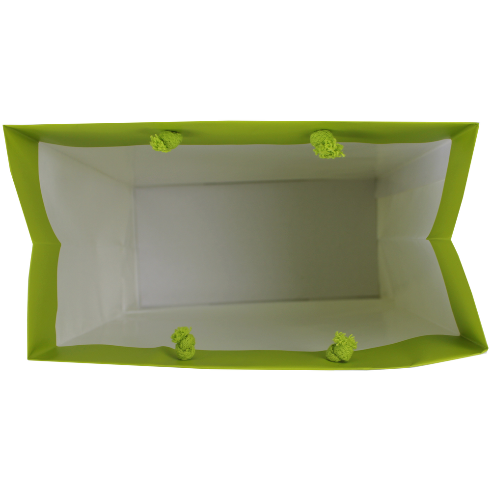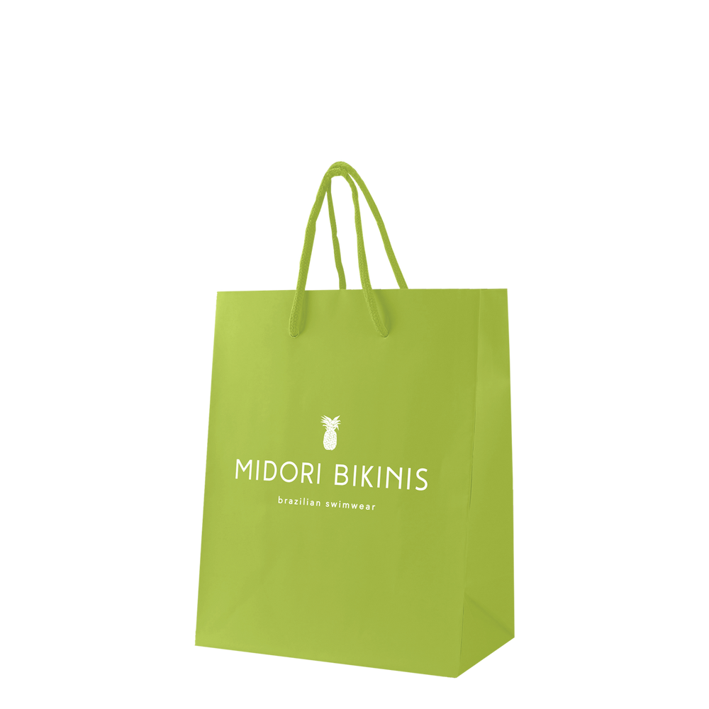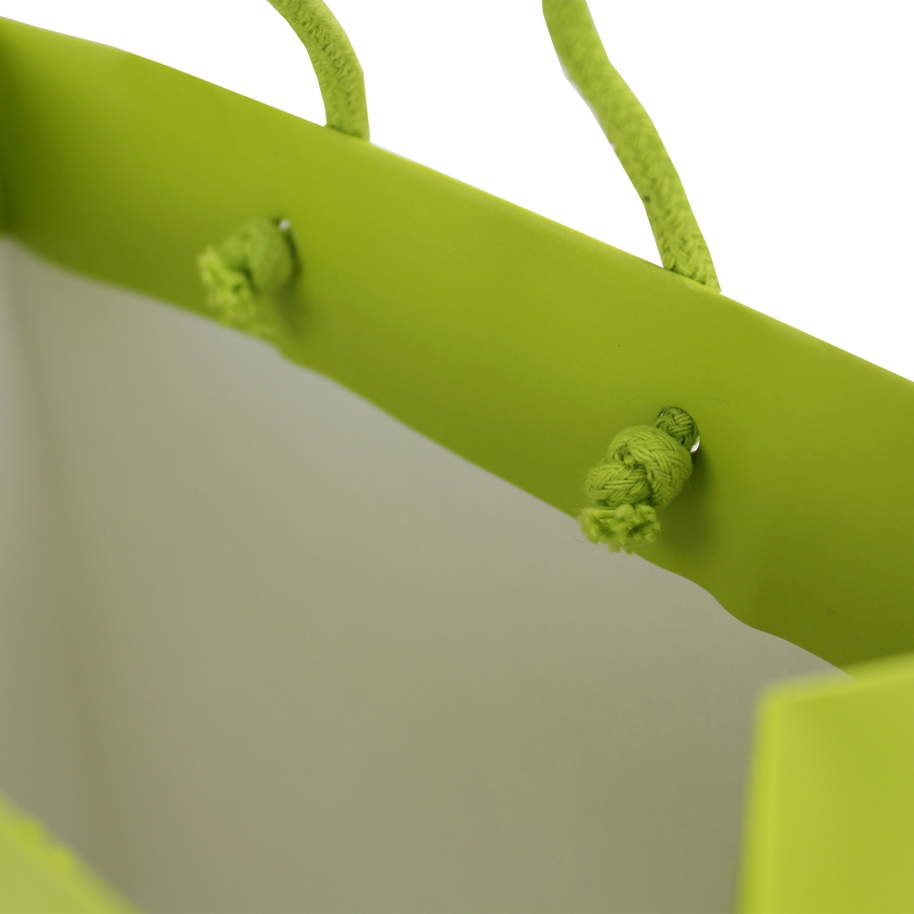 Browse and purchase from our selection of custom printed laminated paper bags. These Small Matte Shopper small shopping totes feature a matte finish, reinforced cord handles, and a cardboard bottom insert. They come in a variety of colors with different decoration methods. The laminated matte bags would be perfect for your shop and target gift wrappings, school events and giveaways, just to name a few. Take advantage of our wholesale pricing available to anyone that can meet the low minimum order requirement. The imprint area can be used for your company logo, simple text all the way to a full design with clip art or other vector works of art. We offer free design services so we can create your design if you don't have one.