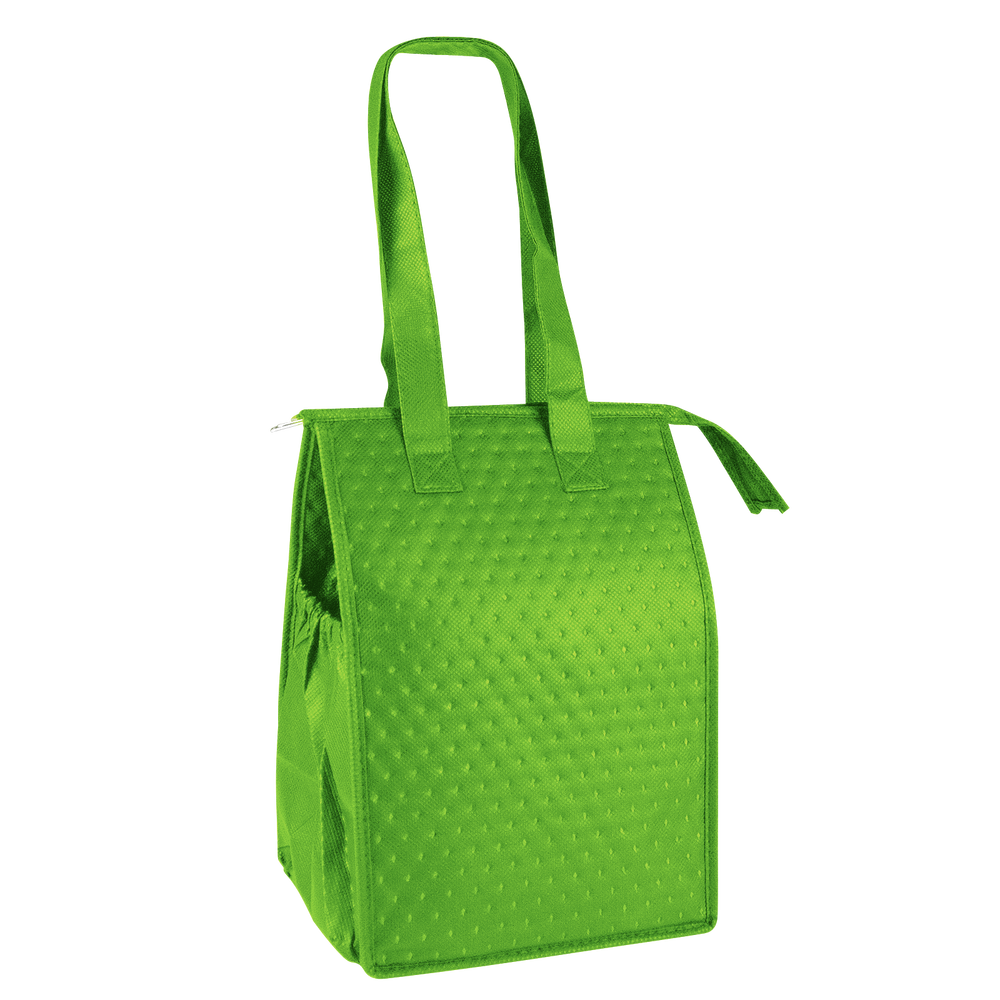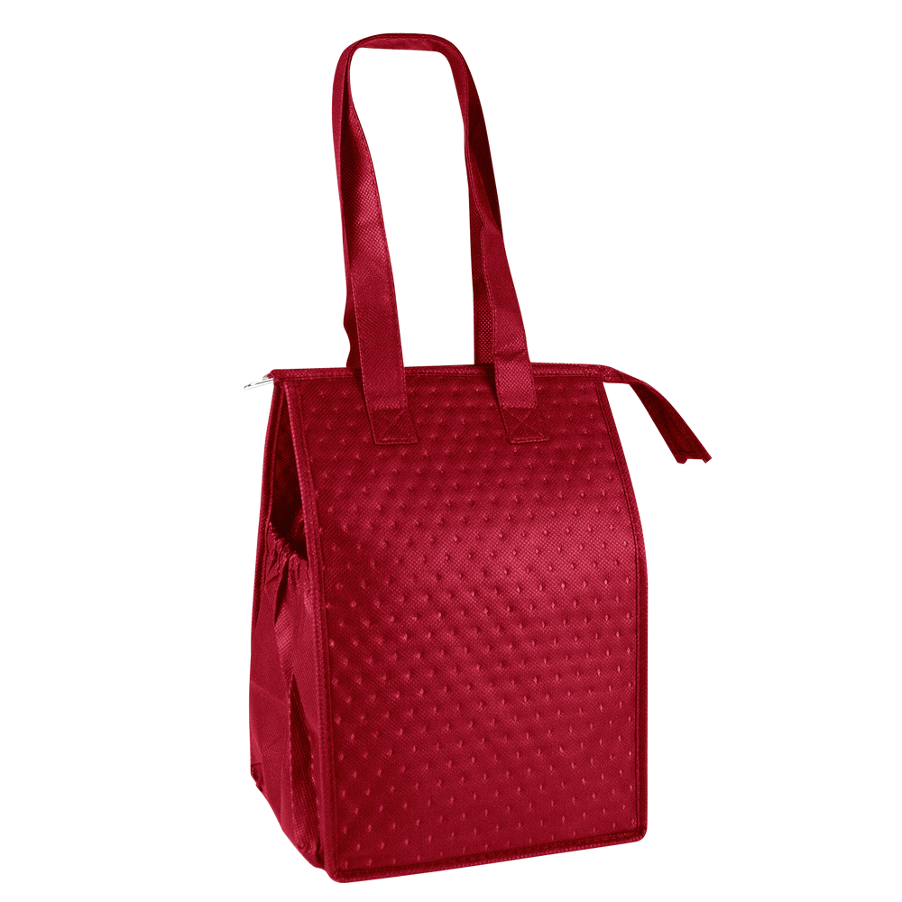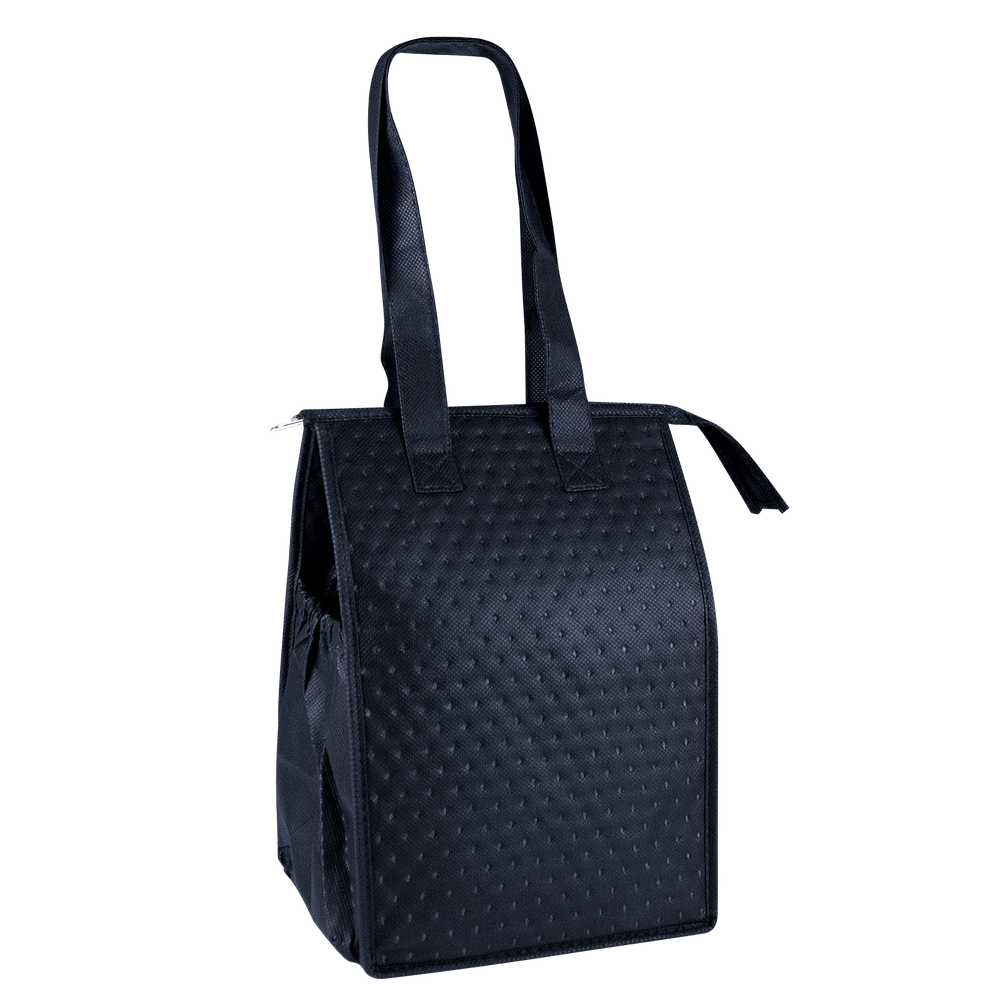 Our classy ‘Snack Pack Insulated Tote’ is made with quilted layers that elevate the desirability of this insulated bag through providing sturdily made eye-catching panels. They are perfect for your daily lunch bag. It has a very convenient 7" side gusset pocket for other dry items. The interior quilting material is made from polyester that adds further insulating qualities to the bag that would be well-insulated without additional layering. Quilted bags of all types are favorite consumer fashion accessories; logo-clad quilted lunch totes are items that consumers are delighted to own. Our ‘Snack Pack Insulated Tote’ includes a water bottle pocket, reinforced stress points, and comfortable 18-inch handles that allow our custom lunch bags to be carried over the shoulder. This style of insulated tote is perfect for campus distributions, company gifts, and for use as fast food giveaway items.