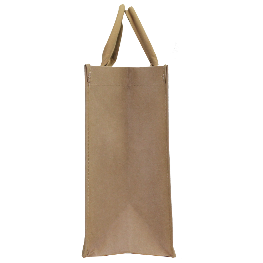 Convention tote bags provide plenty of space for groceries, beach items, or school supplies. They can carry a lot of things, offering multiple uses. Our washable paper convention tote bags provide all the benefits of a conventional tote but with the bonus of being sustainable, aesthetic, and biodegradable. These trendy washable kraft paper tote bags are eco-friendly bags made out of washable kraft paper fabric, making them an innovative, sustainable solution. You can customize this washable paper bag with your logo or anything else in full color, allowing you to share your designs largely and in detail. Make use of the ample 10" W x 8" H imprint area to show the full extent of your logo. With reinforced contoured carrying handles, this washable paper convention tote bag is reliable and durable. If the bag needs a little freshening up, just throw it in the washer and lay the bag flat to dry. This washable tote bag will last. Customize and place your order today! Low wholesale pricing is available with qualified purchases for anyone who can reach the low minimum order amounts.