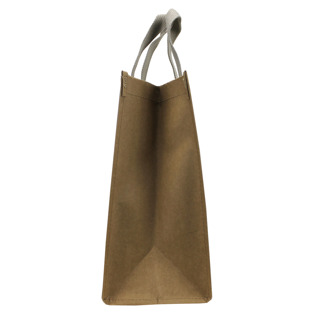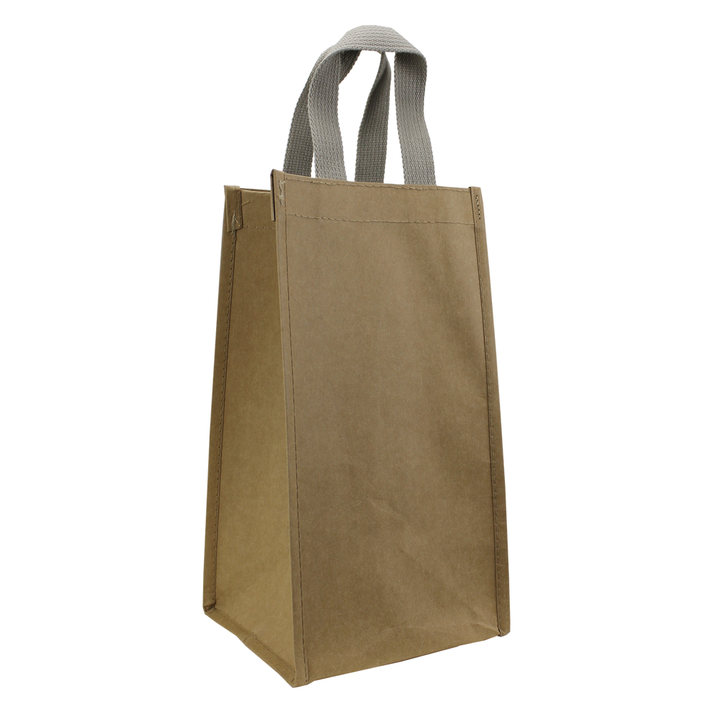 Order our new washable paper wine tote to give to customers at marketing events. These are paper bags you can wash! The Washable Paper Wine Tote is an eco-friendly bag that is made out of washable kraft paper fabric. Customize this unique bag with your logo or custom artwork! With reinforced handles, this bag is great for a large bottle of wine and can now be thrown in the washer to keep the bag clean. Lay the bag flat to dry. Low wholesale pricing is available to anyone who can reach the low minimum order amounts. This bag is also biodegradable to further ensure its eco-friendliness as a product. Reach out to our team by calling (800) 255-0885 or emailing info@holdenbags.com if you have any questions about one of our reusable bags or customization options. Only buy the best quality washable paper wine totes for your company.