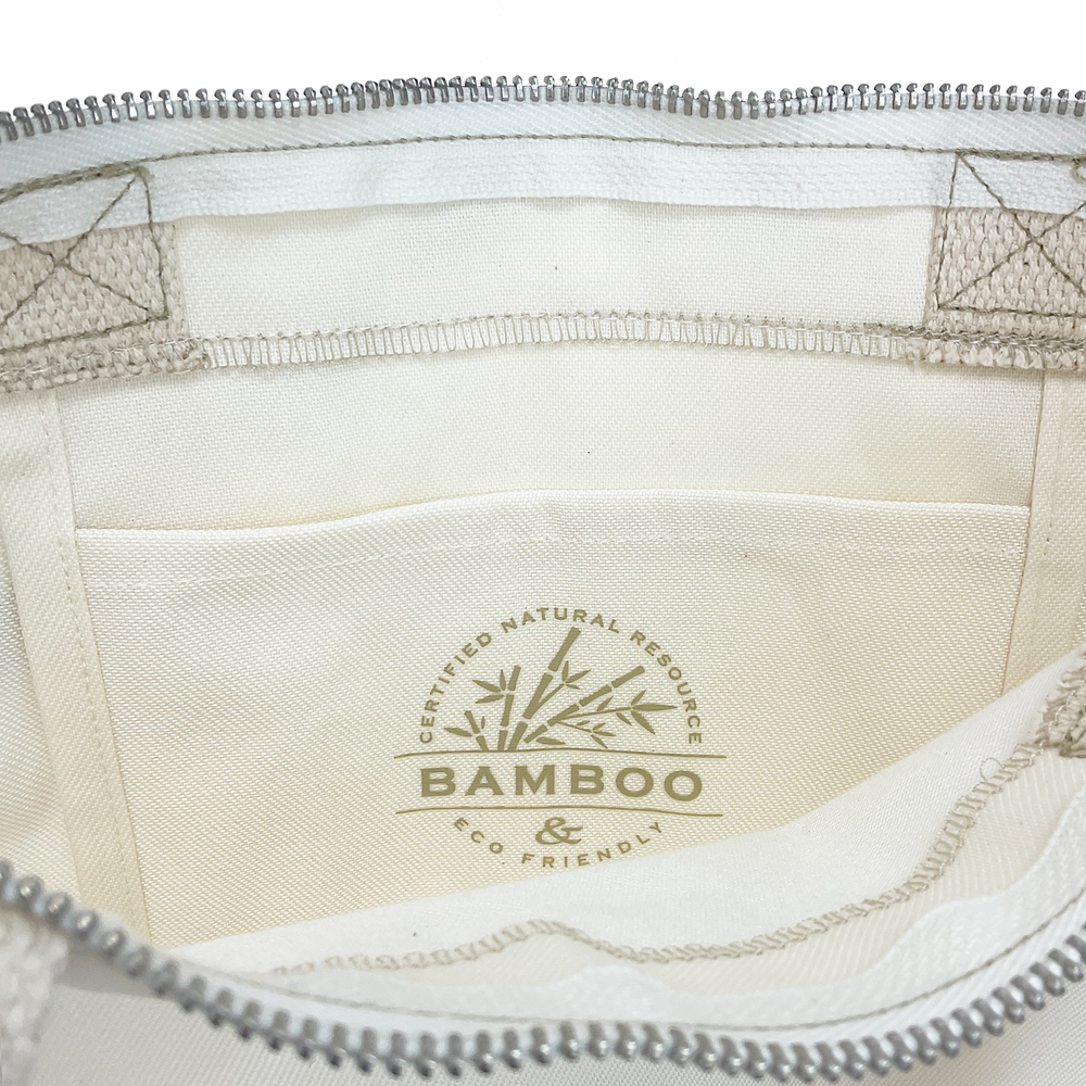 Eco-consciousness has never looked better than with the zip top bamboo tote bag from Holden Bags! Made with natural, sustainable fibers and woven bamboo-based thread, this 17” L x 13 ¾” H x 5” W multi-pocketed tote is a reusable and sustainable custom tote bag many will love. Plus, the extra-long 26” shoulder straps are excellent for keeping essentials close without sacrificing comfort.