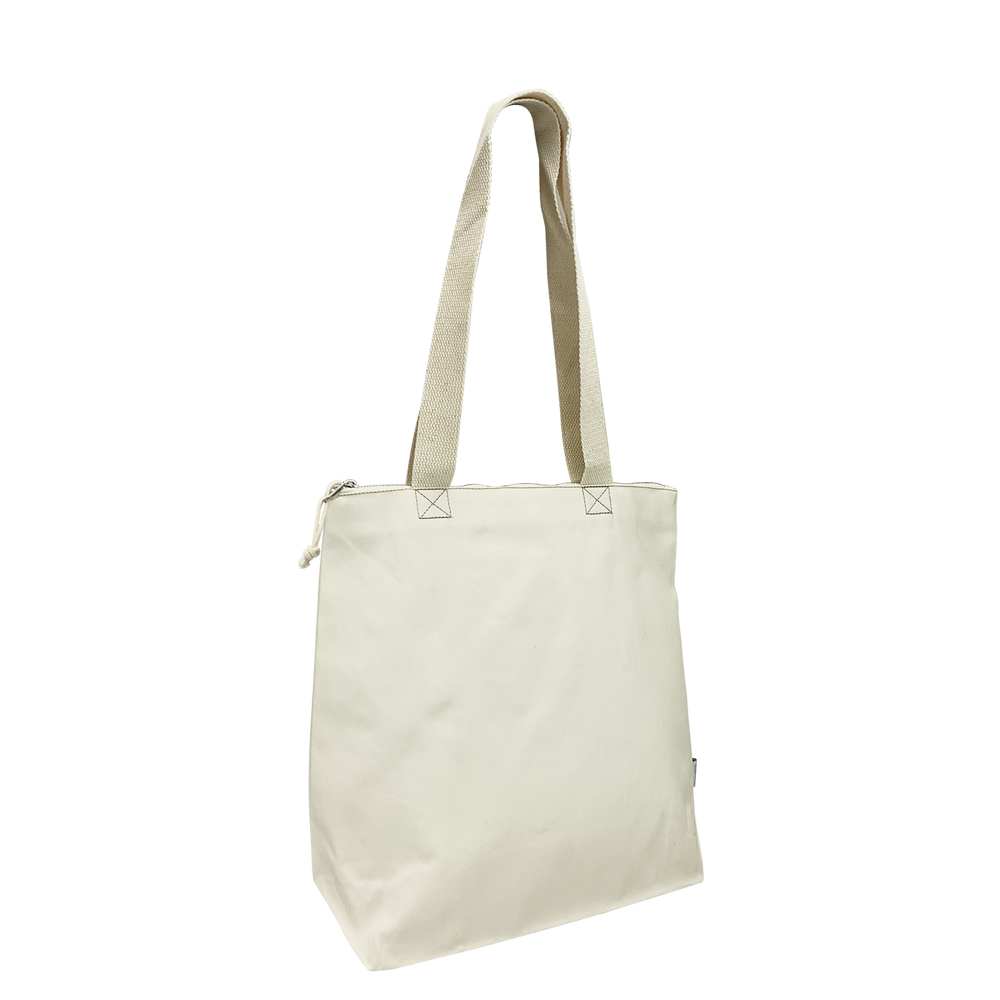 You can easily showcase your brand on the bag with single-color stitching on the front or back panel—each space accommodates a 4” W x 2” H imprint area. Wherever the bag goes, from the grocery store to the office, everyone’s attention will fall on your name or logo. Invest in a fashionable and sustainable way to carry items and promote your brand with this zip top bamboo tote bag.