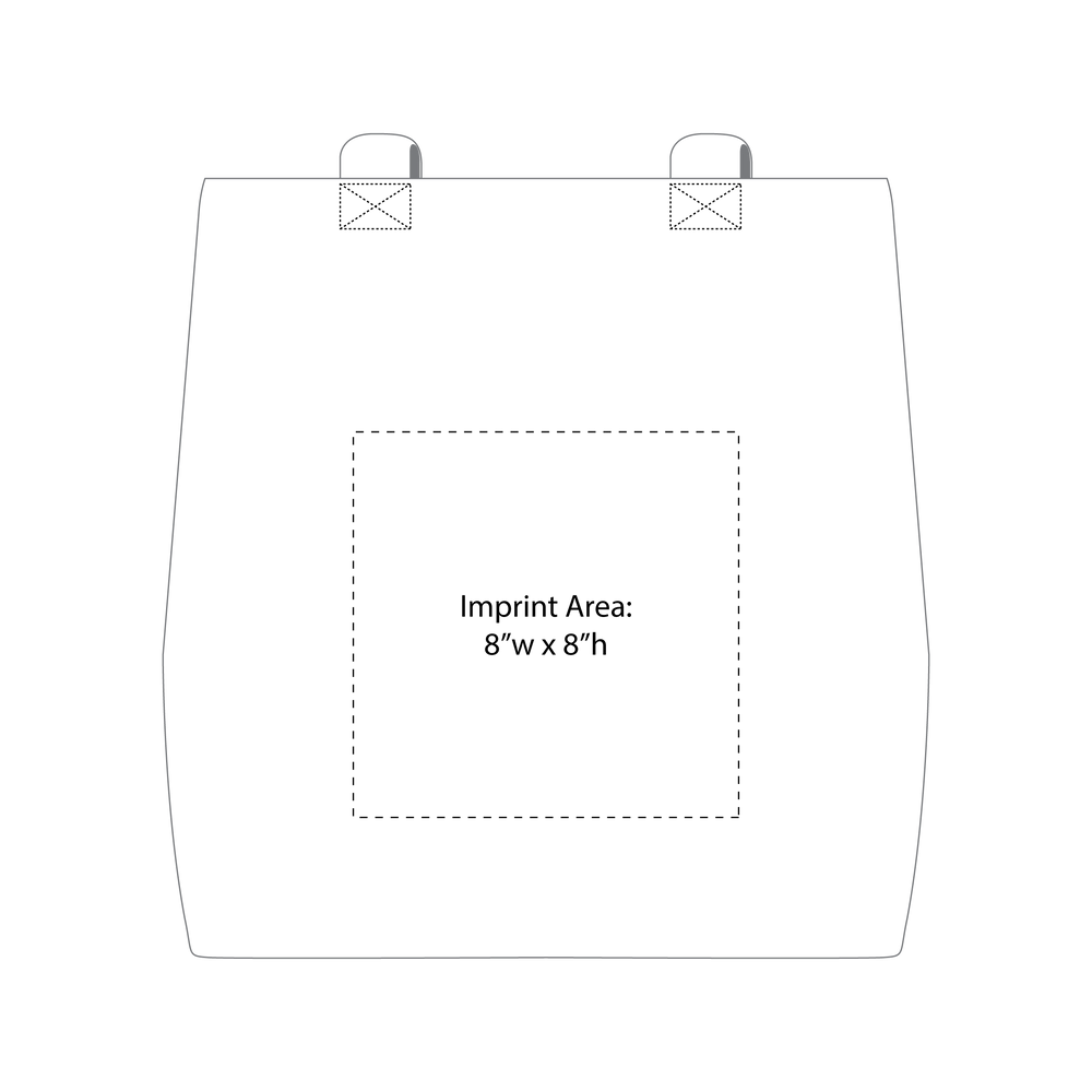 - Back panel or front panel single-color imprint area of 4” W x 2” H